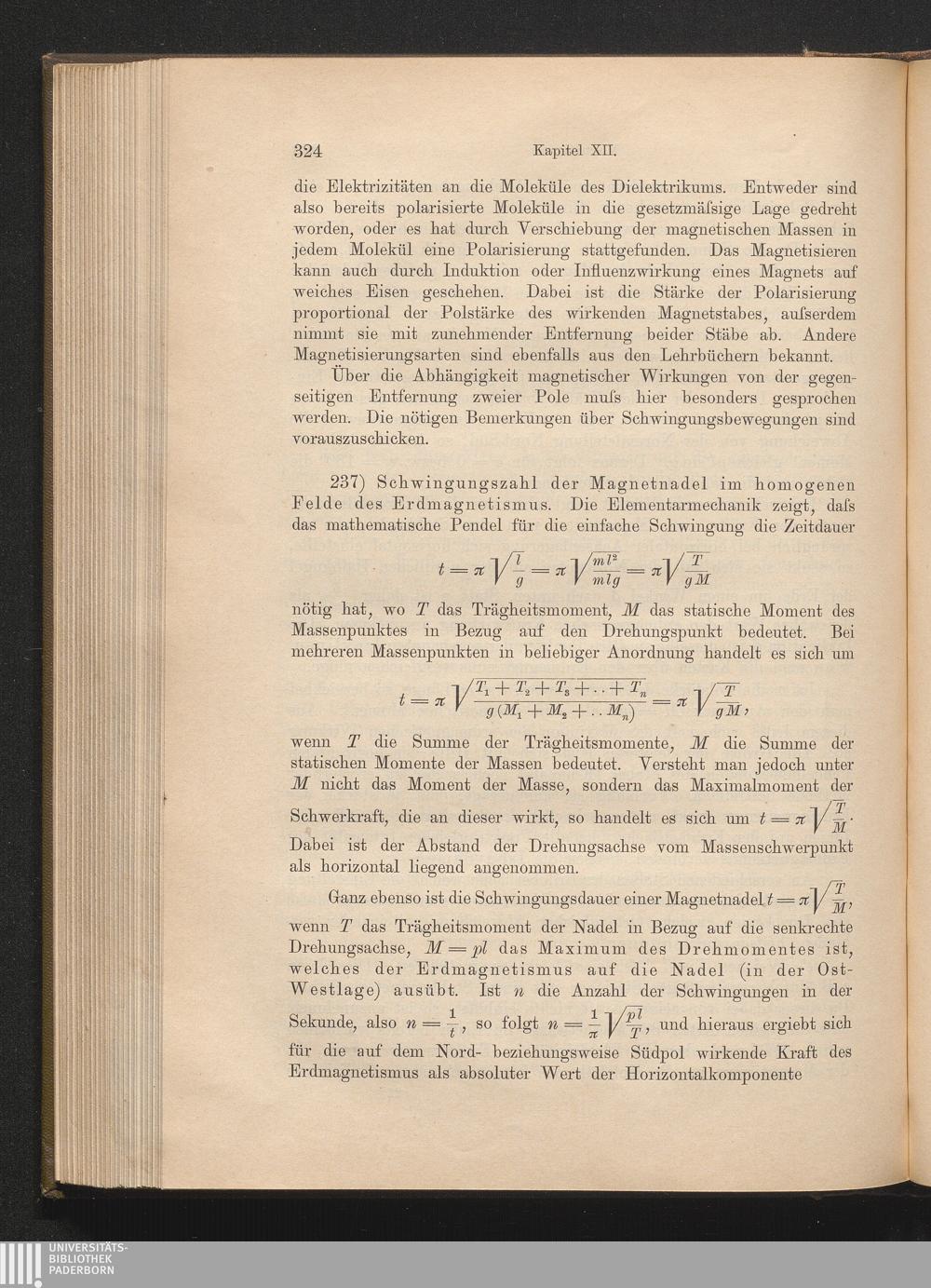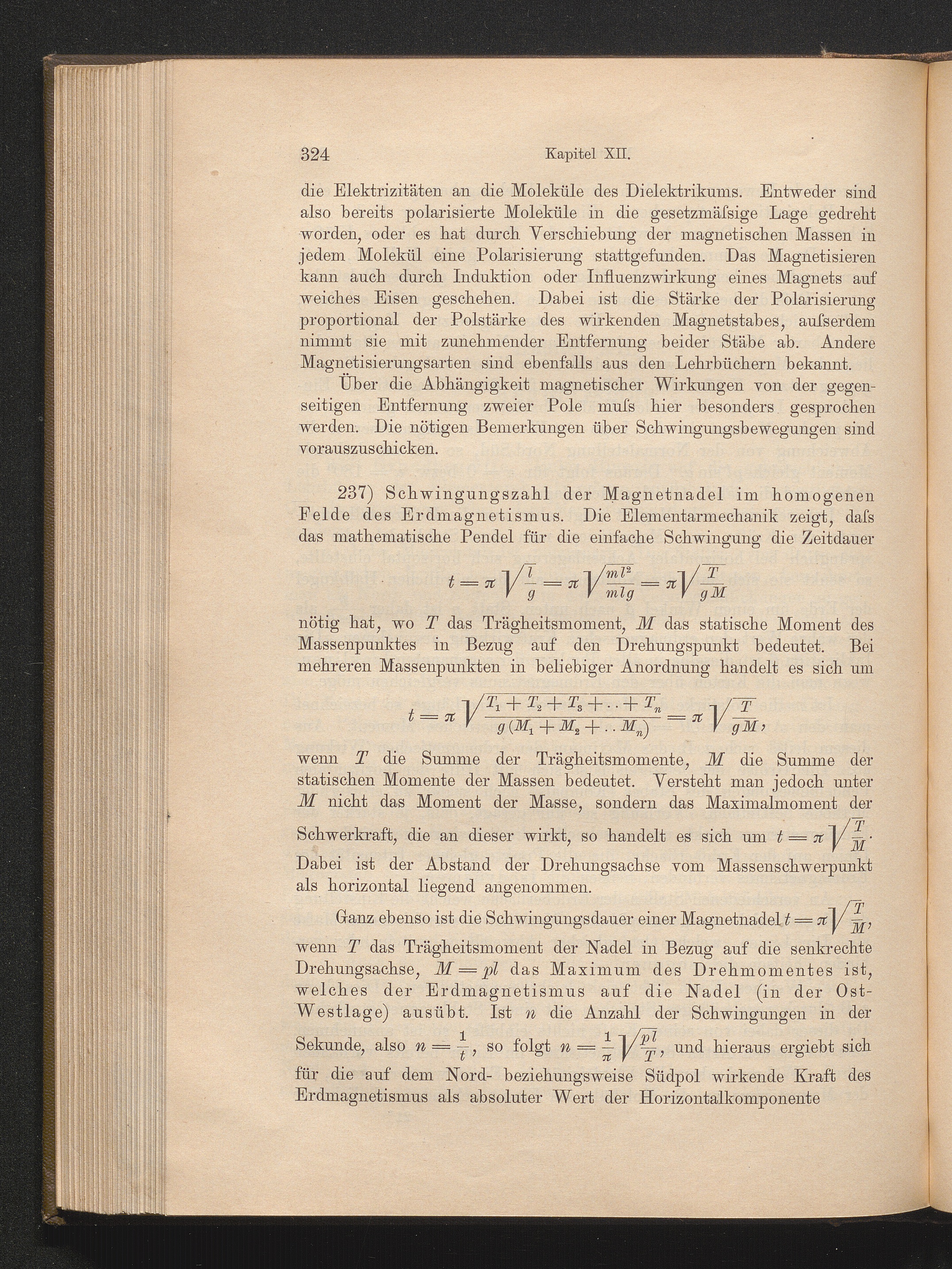237) Schwingungszahl der Nagnetnadel im homogenen Felde des Erdmagnetismus