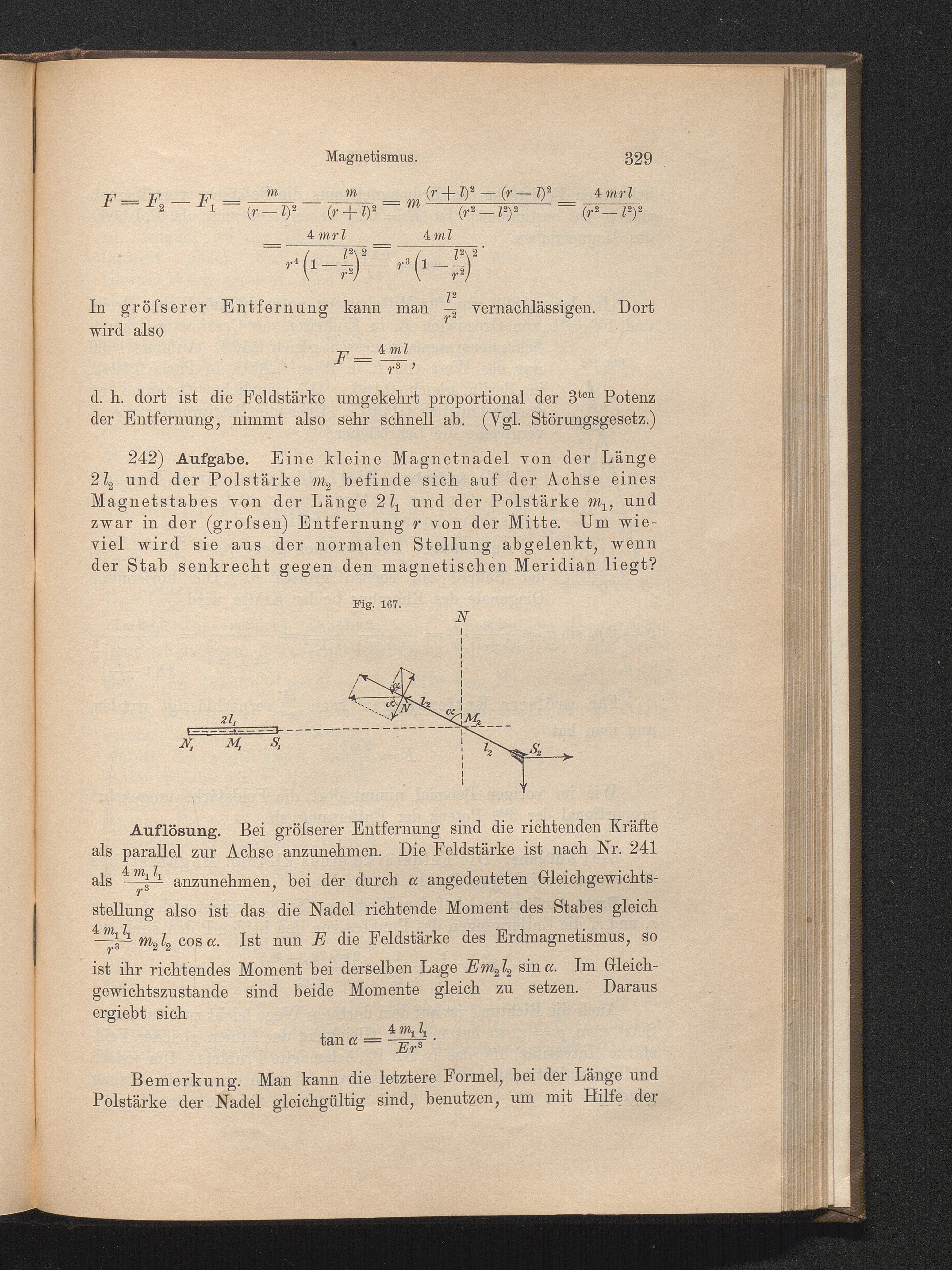 242) Bestimmung der Ablenkung der Magnetnadel durch einen Magnetstab für axiale [...]