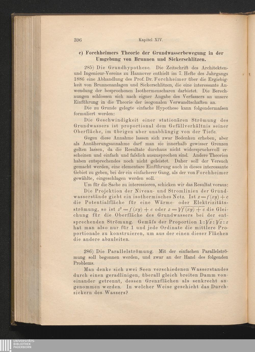 c) Forchheimersche Theorie der Grundwasserbewegung in der Umgebung von Brunnen und[...]