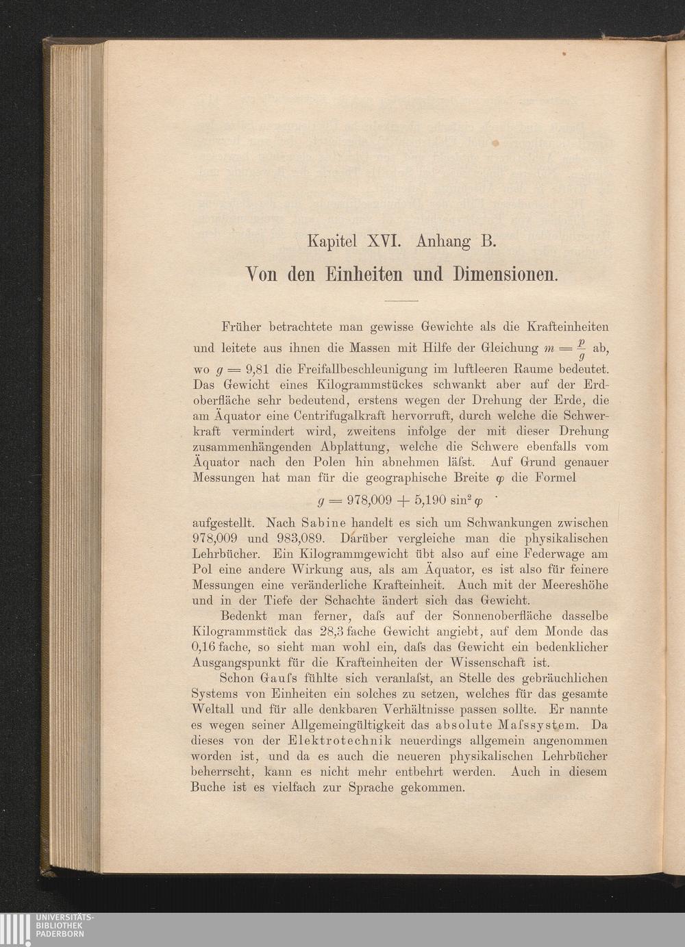 Kapitel XVI. Anhang B. Von den Einheiten und Dimensionen.