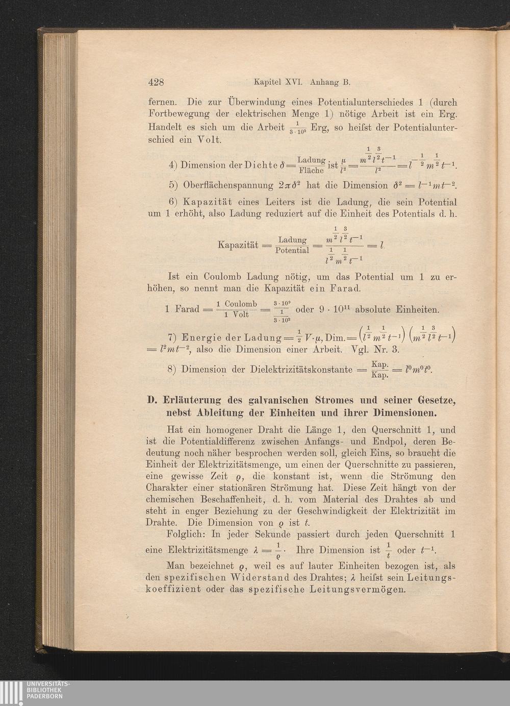Kapitel XVI. Anhang B. Von den Einheiten und Dimensionen.