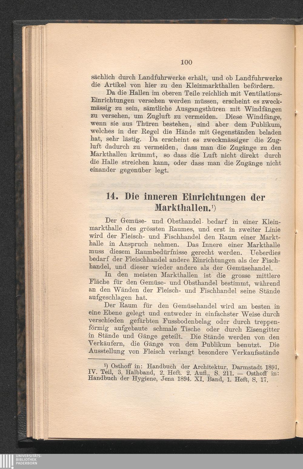 14. Die inneren Einrichtungen der Markthallen.