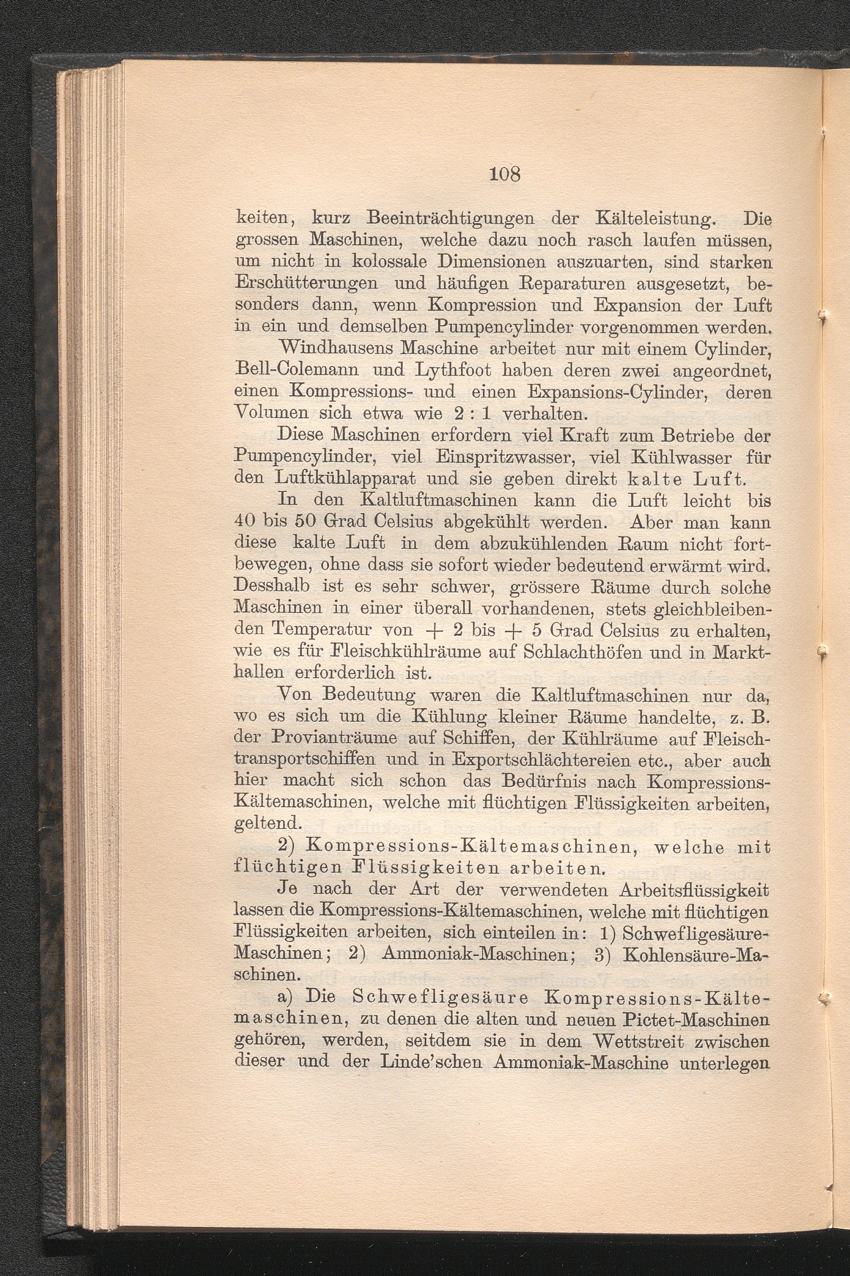 2) Kompressions-Kältemaschinen, welche mit flüchtigen Flüssigkeiten arbeiten.