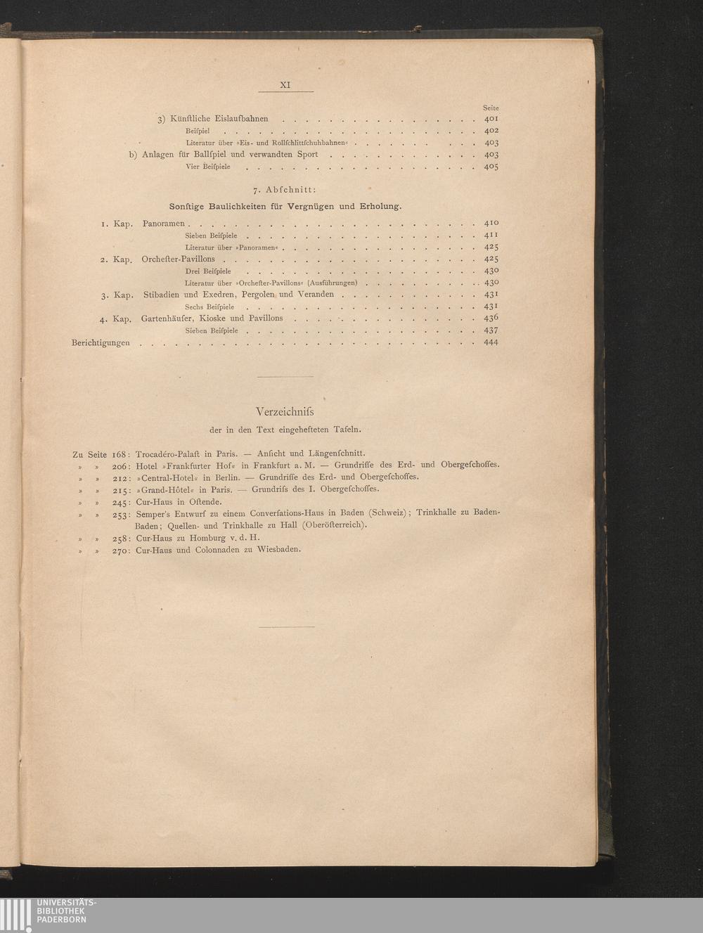 Verzeichniss der in den Text eingehefteten Tafeln.