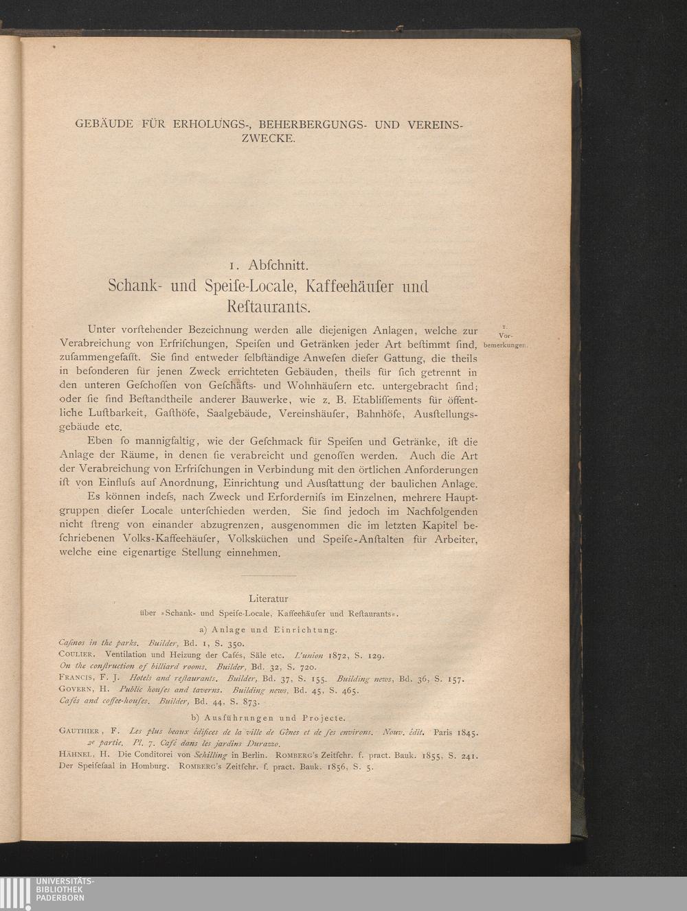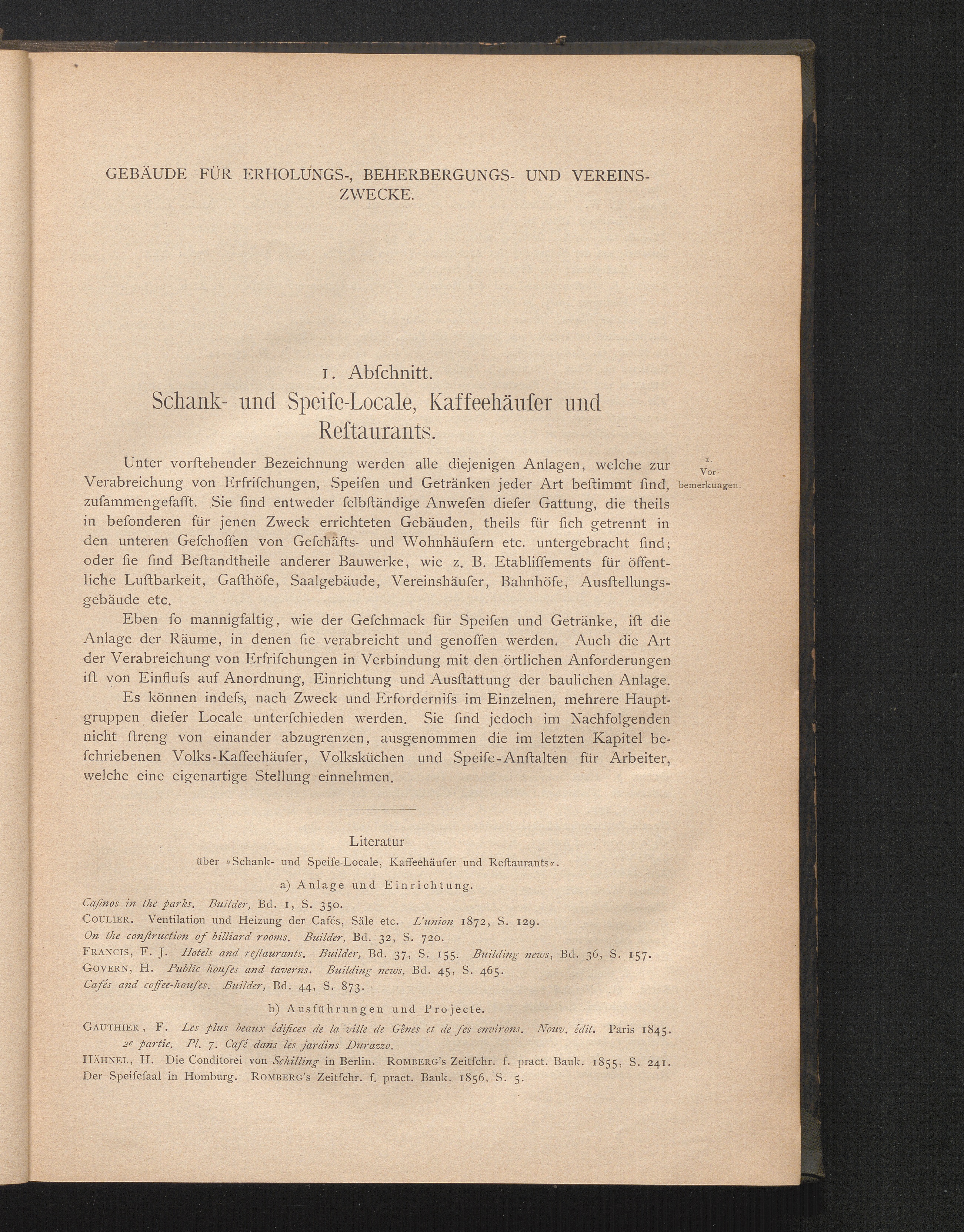 1. Abschnitt: Schank- und Speise-Locale, Kaffeehäuser und Restaurants.
