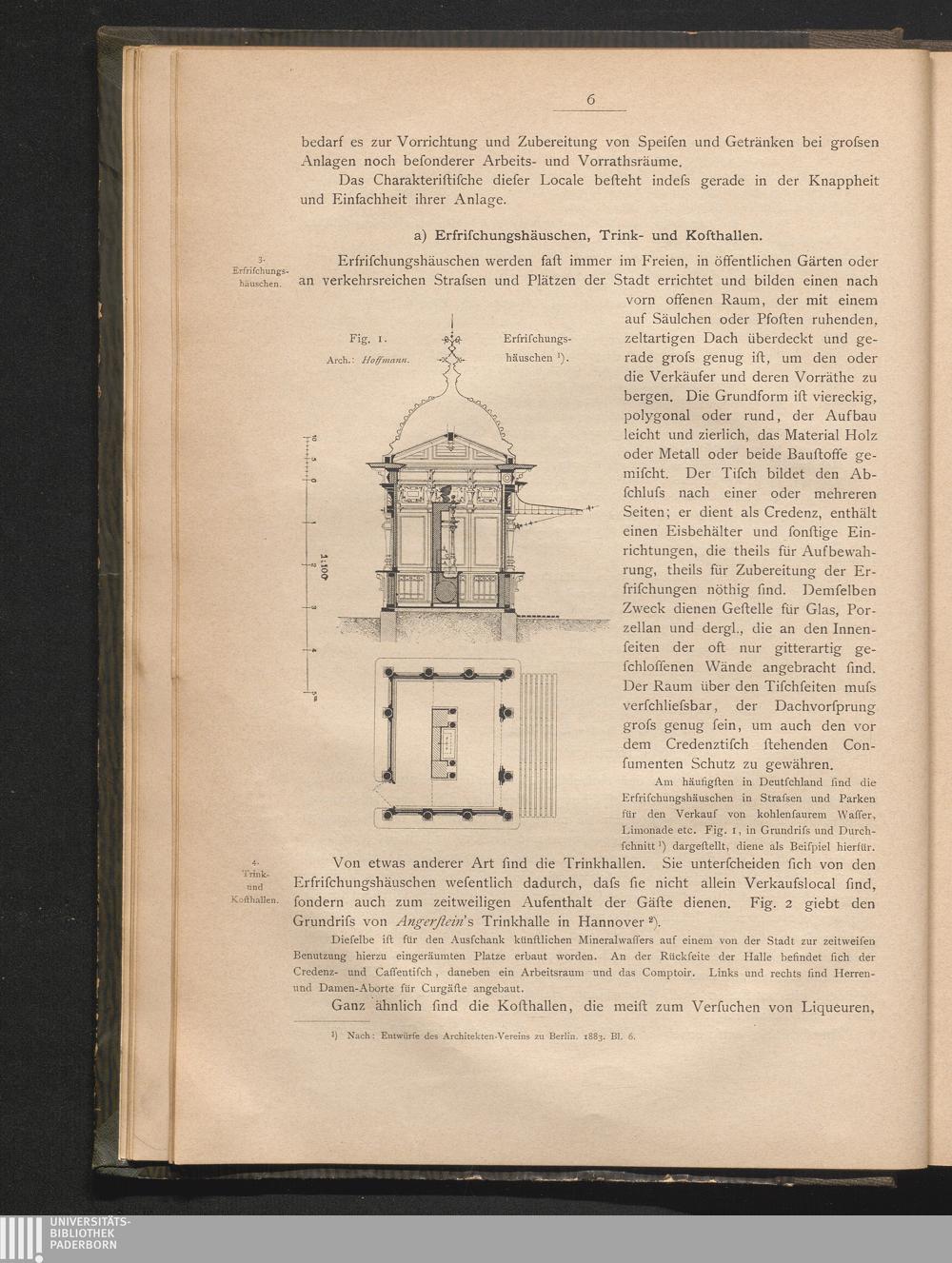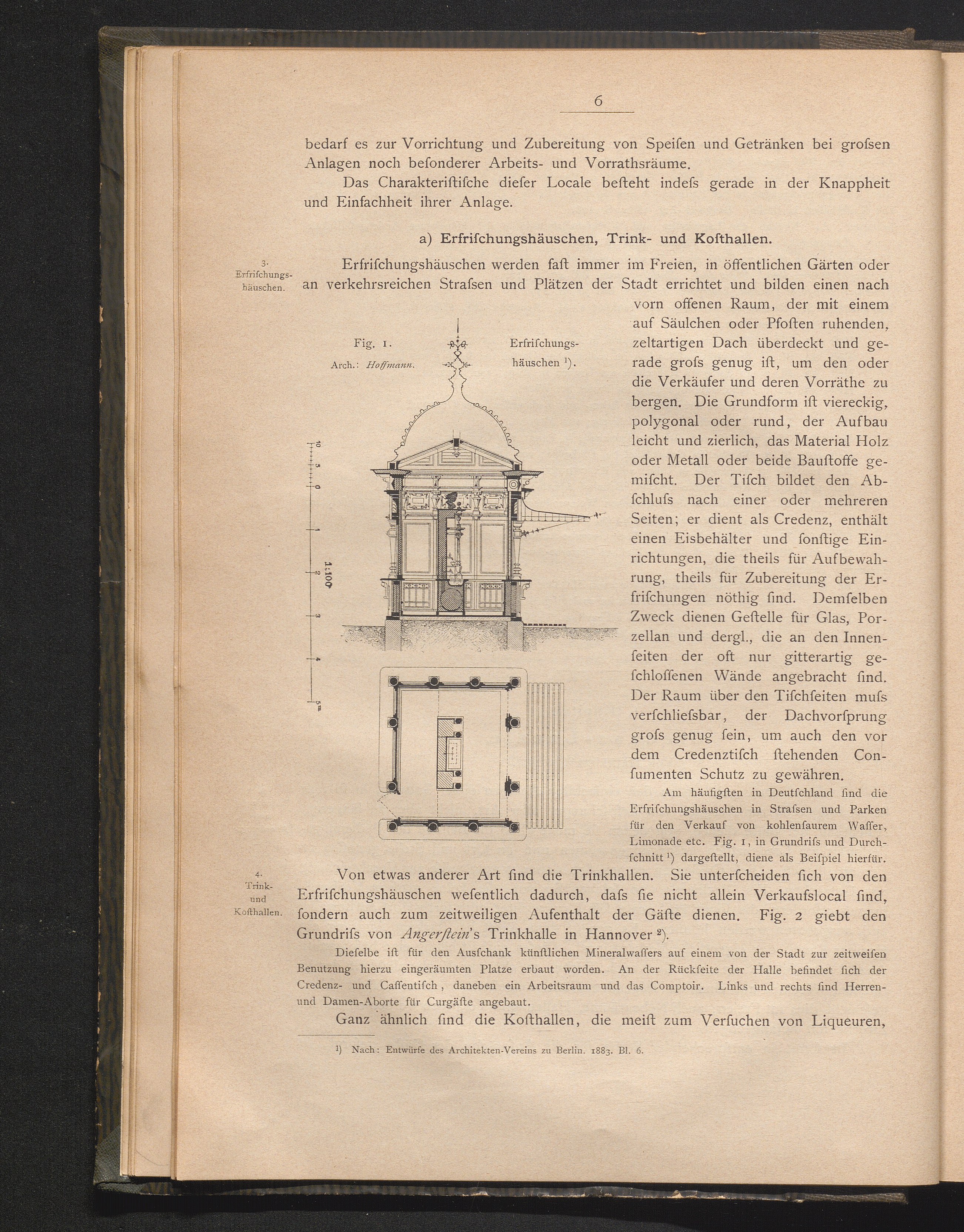 a) Erfrischungshäuschen, Trink- und Kosthallen