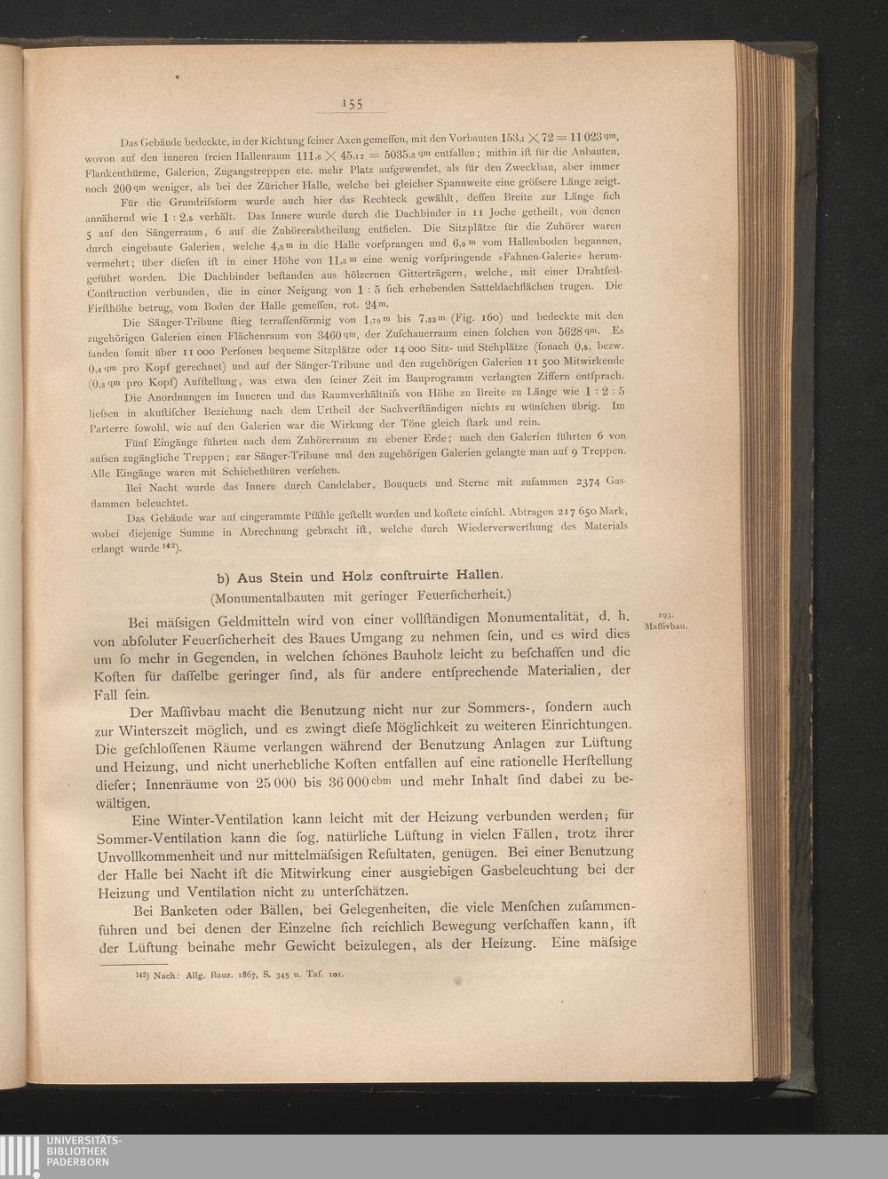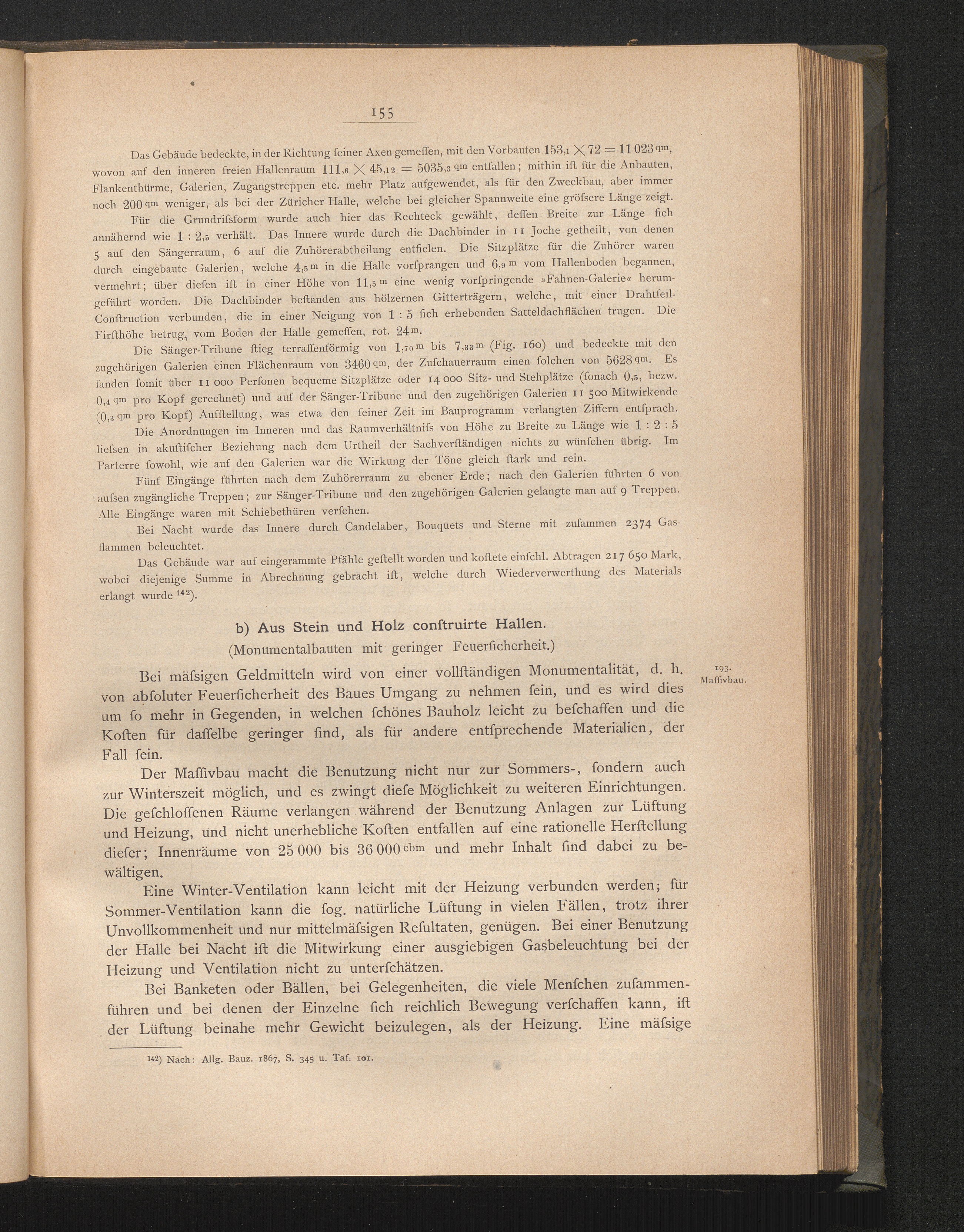 b) Aus Stein und Holz construirte Hallen (Monumentalbauten mit geringer Feuersic[...]