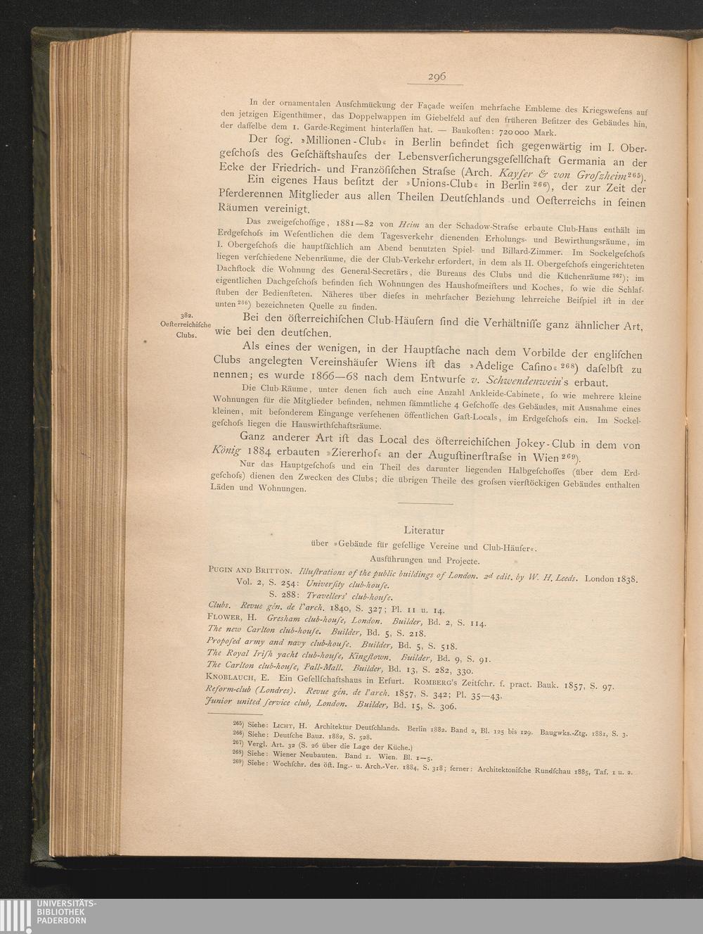 Literatur über "Gebäude für gesellige Vereine und Club-Häuser" (Ausführungen und[...]