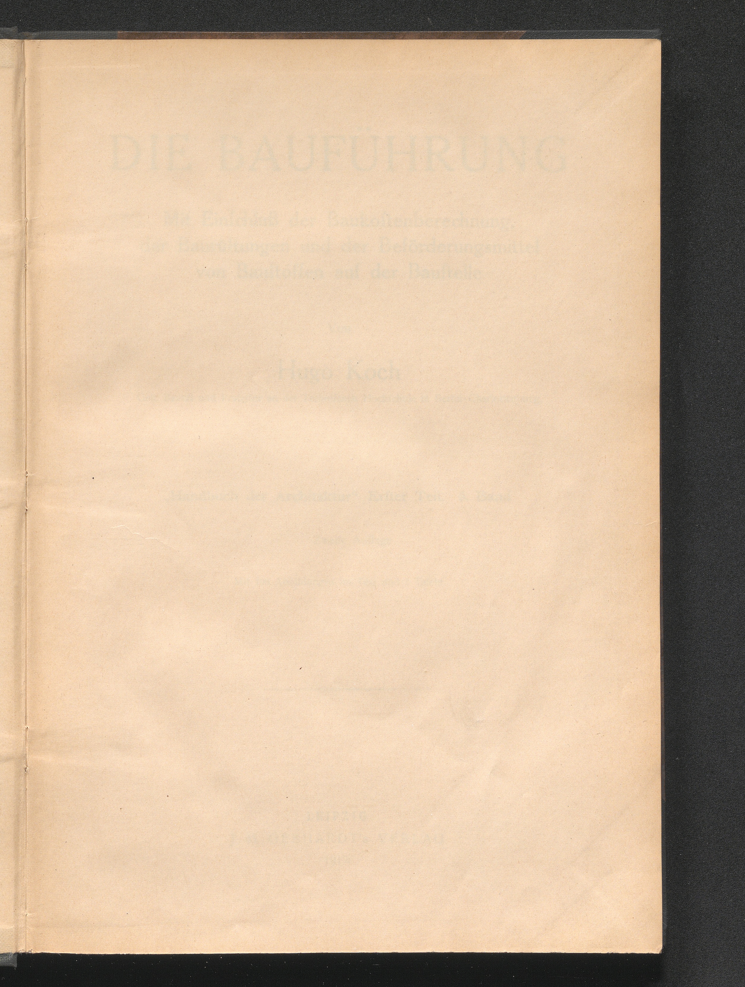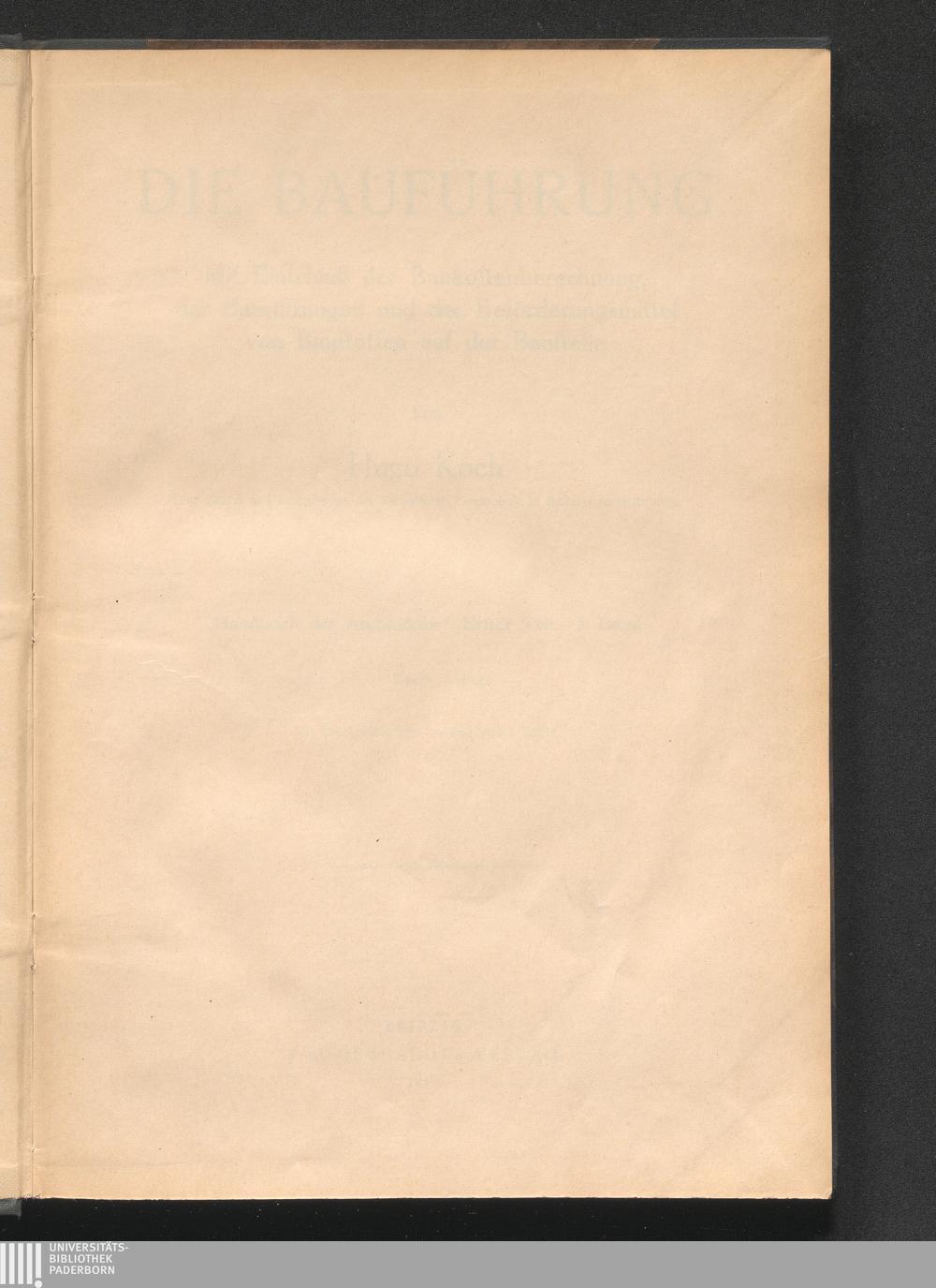 Die Bauführung : mit Einschuß der Baukostenberechnung, der Baurüstungen und der Beförderungsmittel von Baustoffen auf der Baustelle ; mit 198 in d. Text eingedr. Abb., sowie 3 Taf. / Hugo Koch