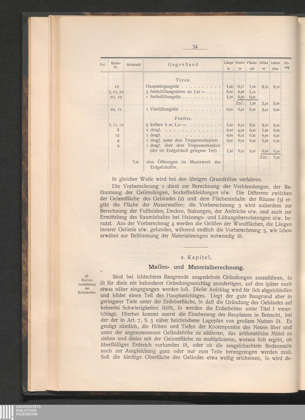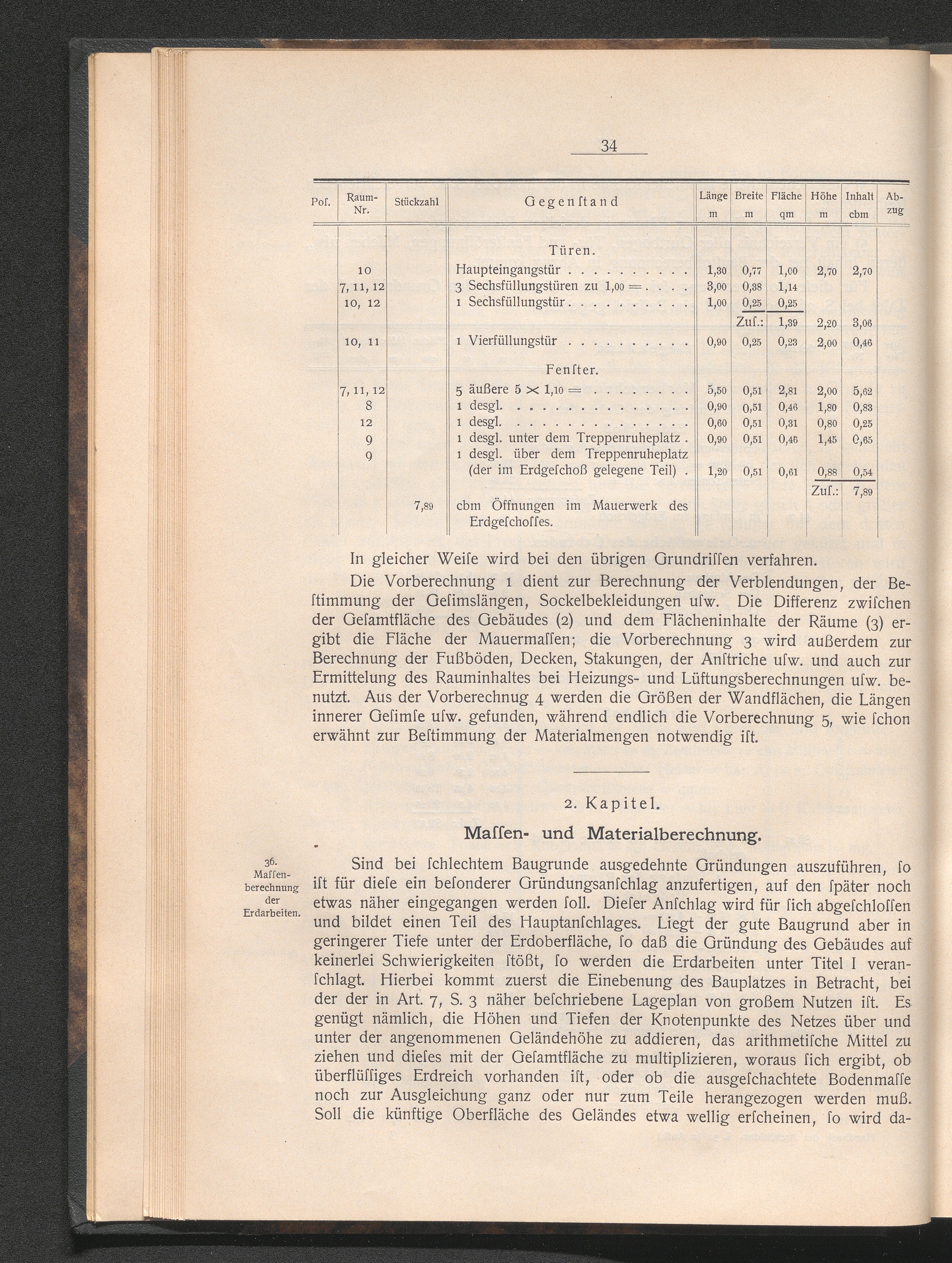2. Kap. Massen- und Materialberechnung.