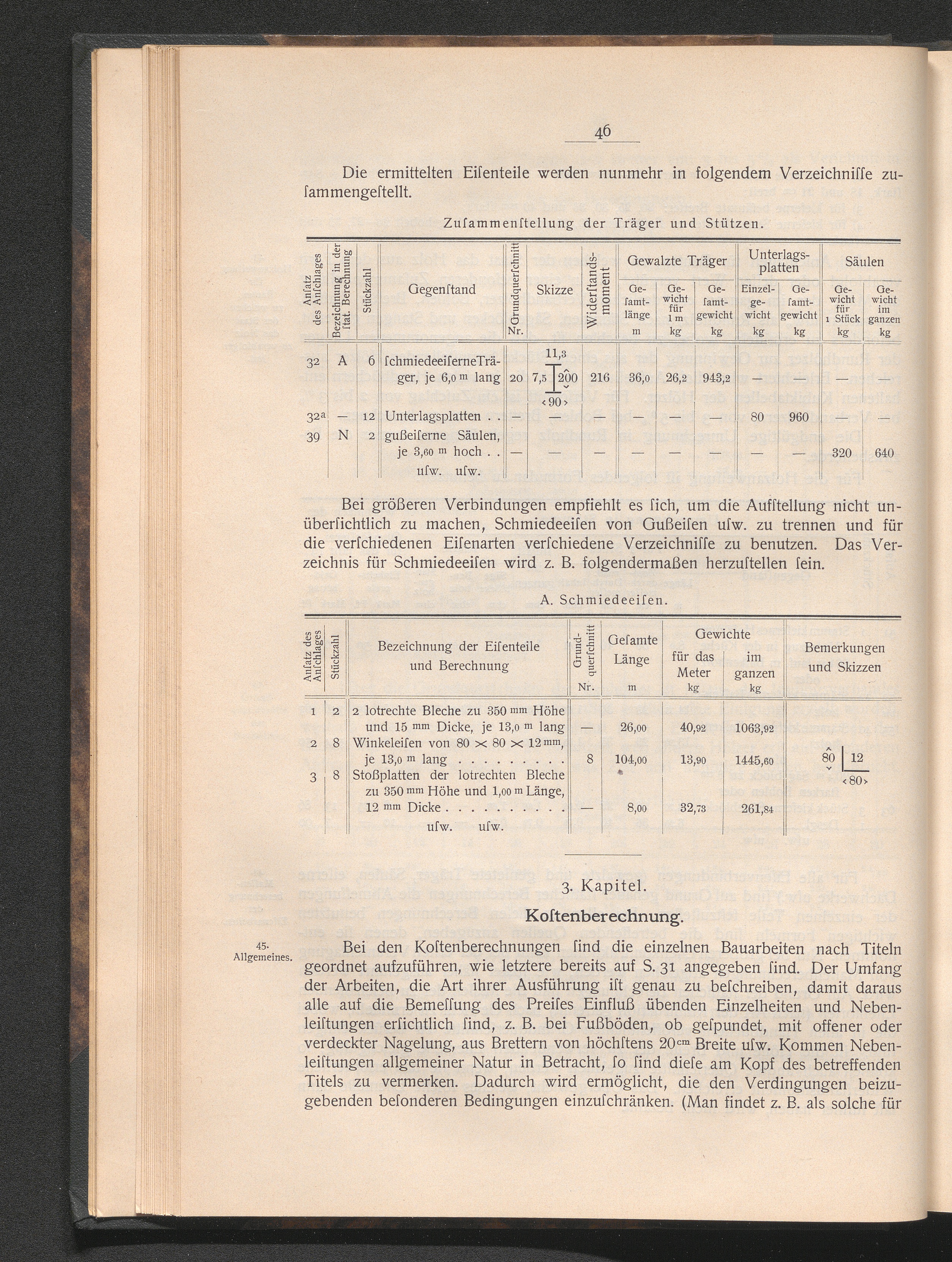 3. Abschnitt. Aufstellung des Kostenanschlages.