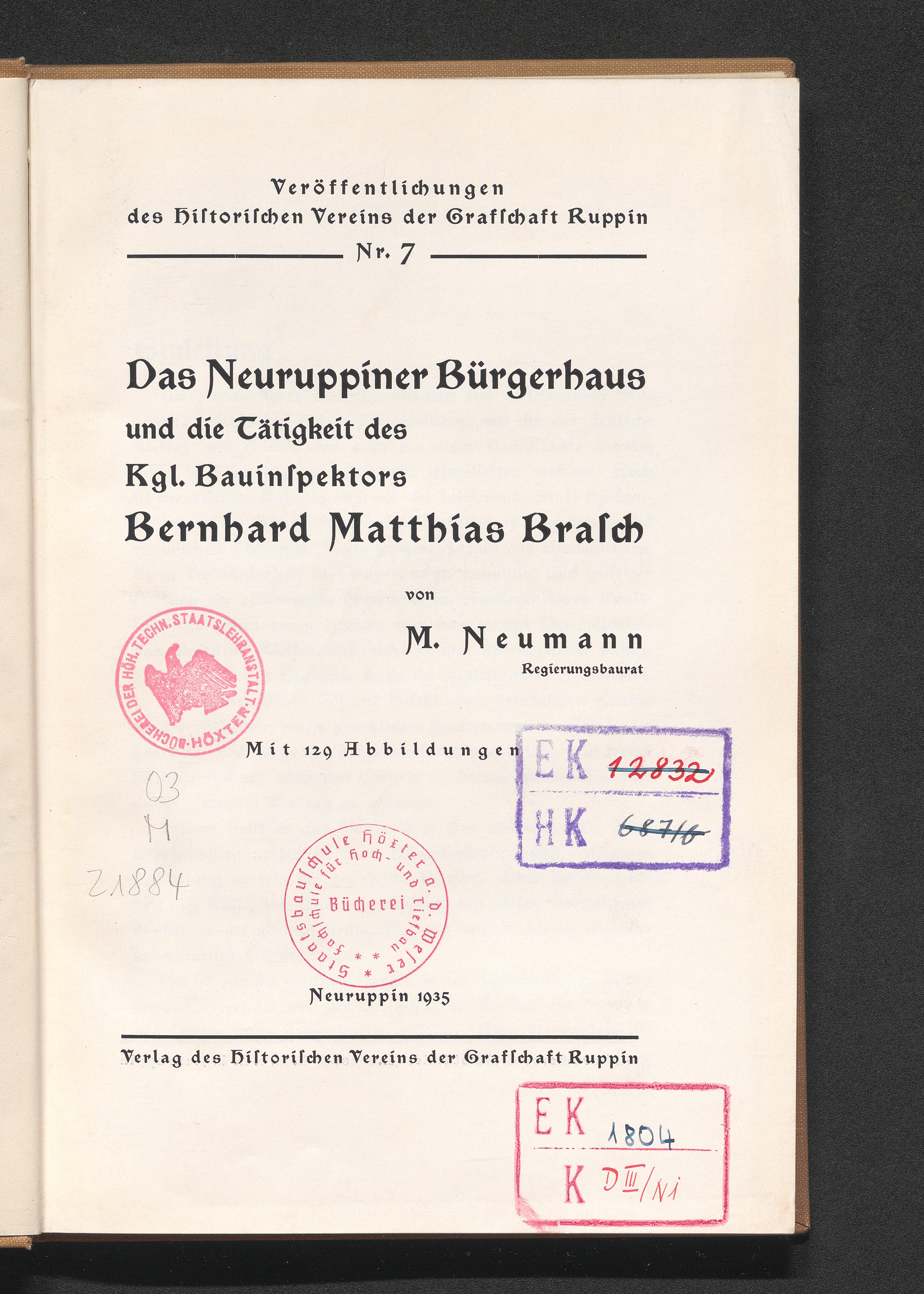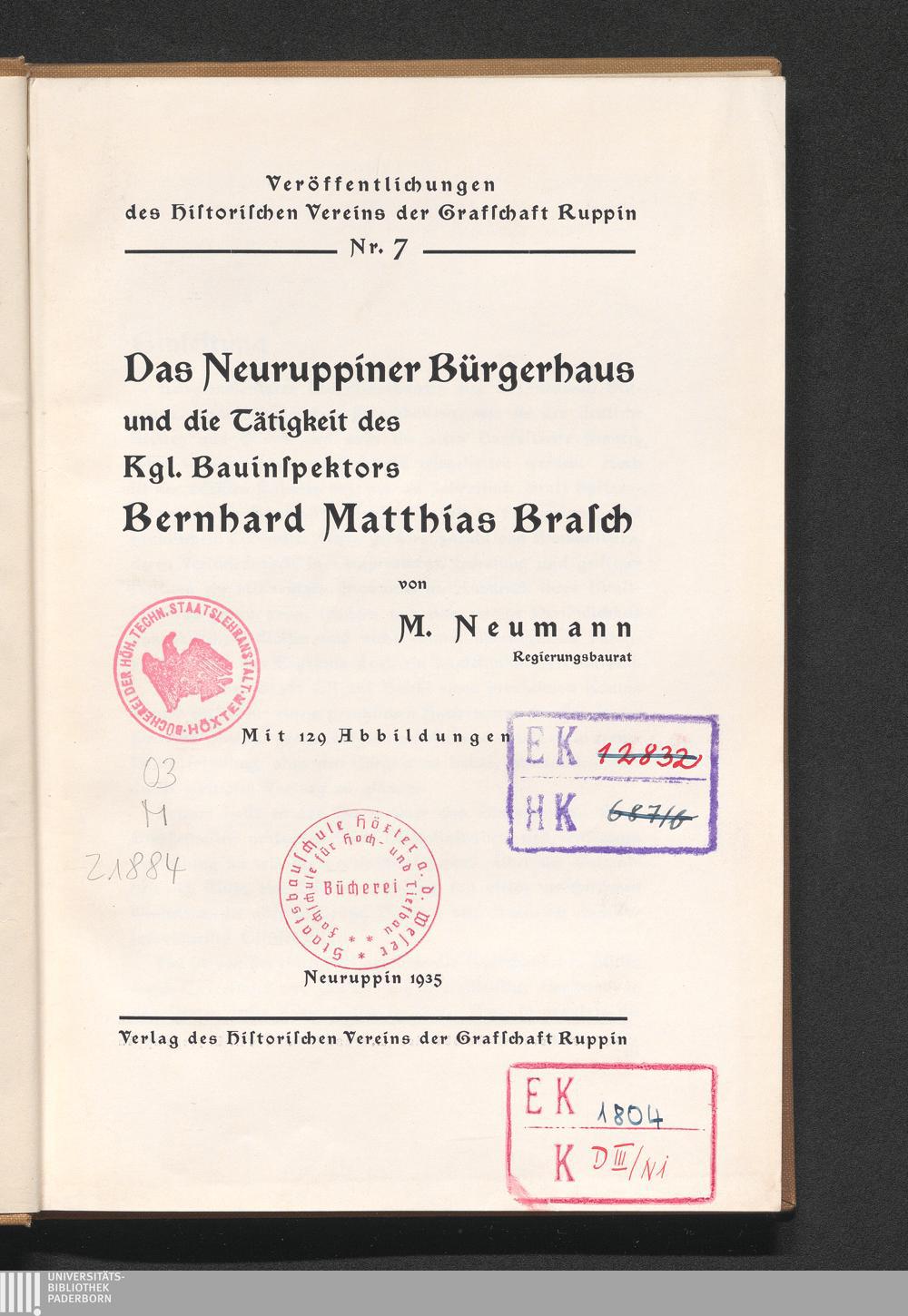 Das Neuruppiner Bürgerhaus und die Tätigkeit des kgl. Bauinspektors Bernhard Matthias Brasch / von M. Neumann