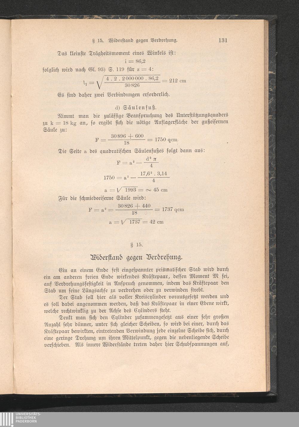 Die Festigkeitslehre : Elementares Lehrbuch für den Schul- und Selbstunterricht sowie zum Gebrauch in der Praxis nebst einem Anhang enthaltend Tabellen der Potenzen, Wurzeln, Kreisumfänge und Kreisinhalte / bearbeitet von R. Lauenstein