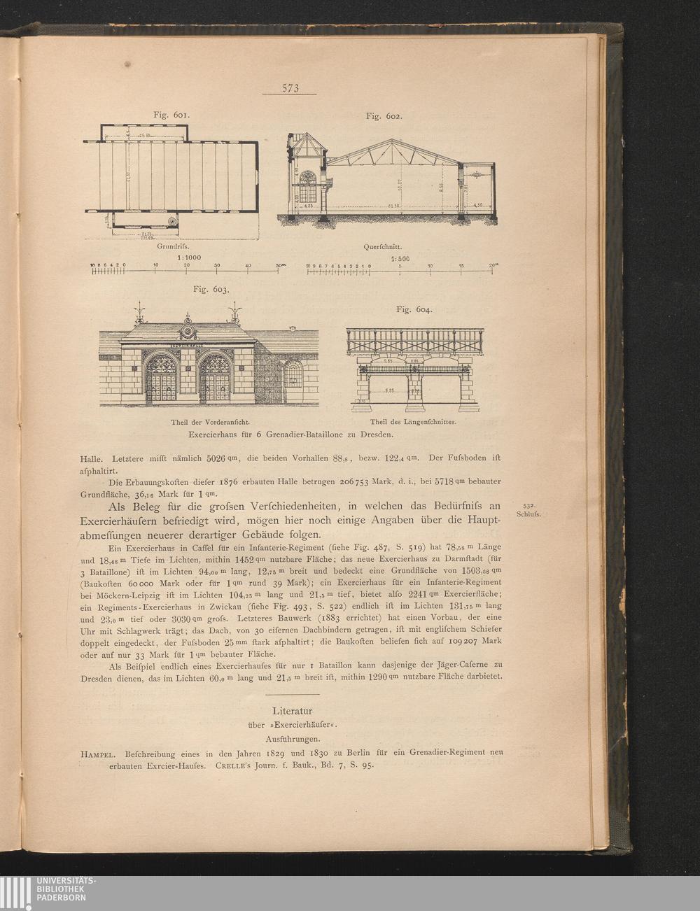 Literatur über "Excercierhäuser" (Ausführungen).