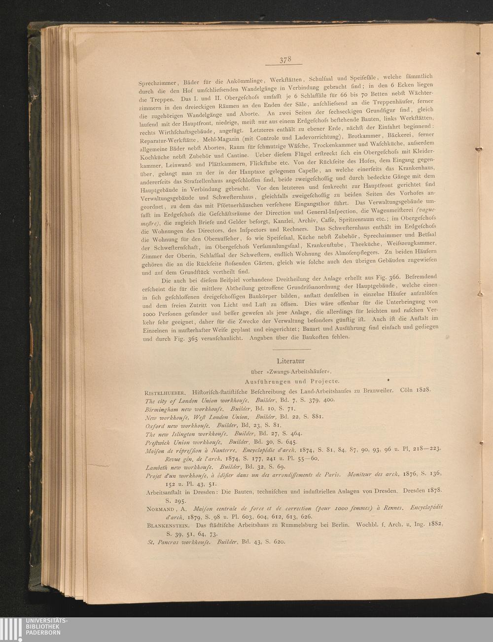 Literatur über "Zwangs-Arbeitshäuser" (Ausführungen und Projecte).