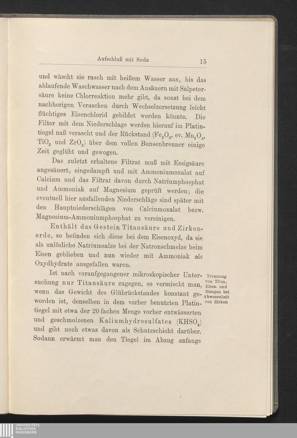 a) Abscheidung von Eisen, Mangan, Titan und Zirkon Trennung derselben.