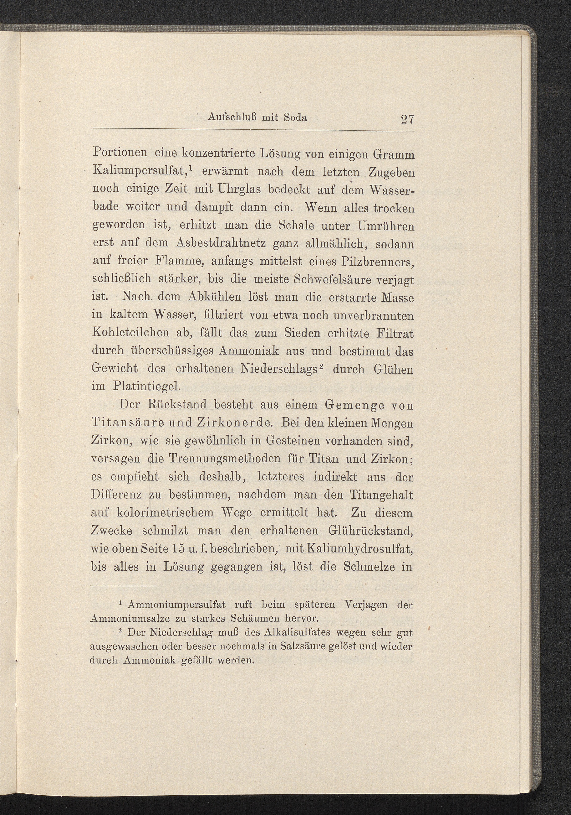 Eisen, Aluminium, Titan, Zirkon, Mangan, Phosphorsäure. (Ammoniakfällung).