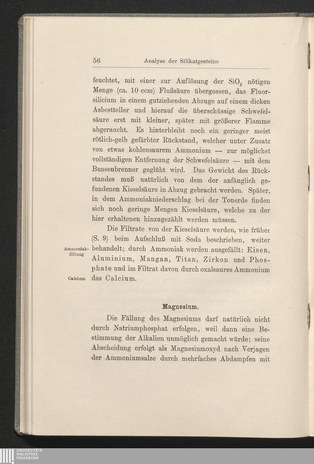 A. Analyse der Silikatgesteine.