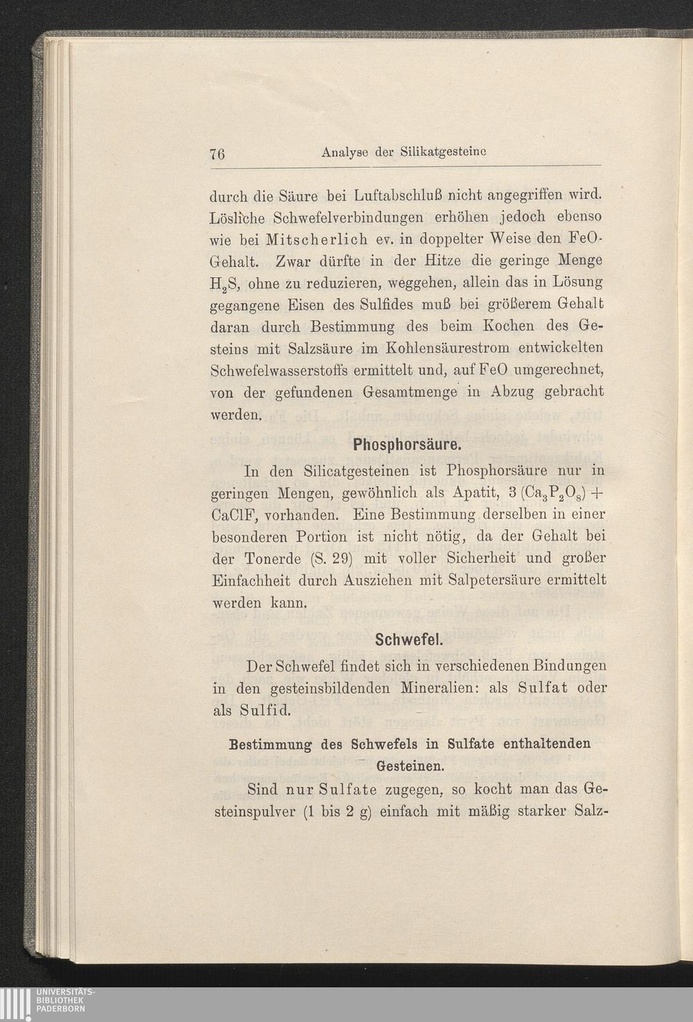 Bestimmung des Schwefels in Sulfate enthaltenden Gesteinen.
