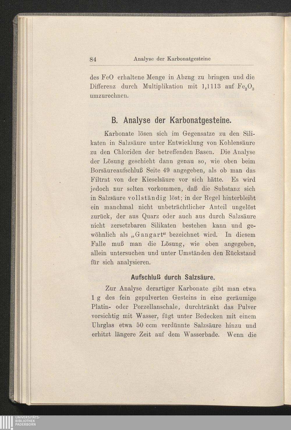 B. Analyse der Karbonatgesteine.
