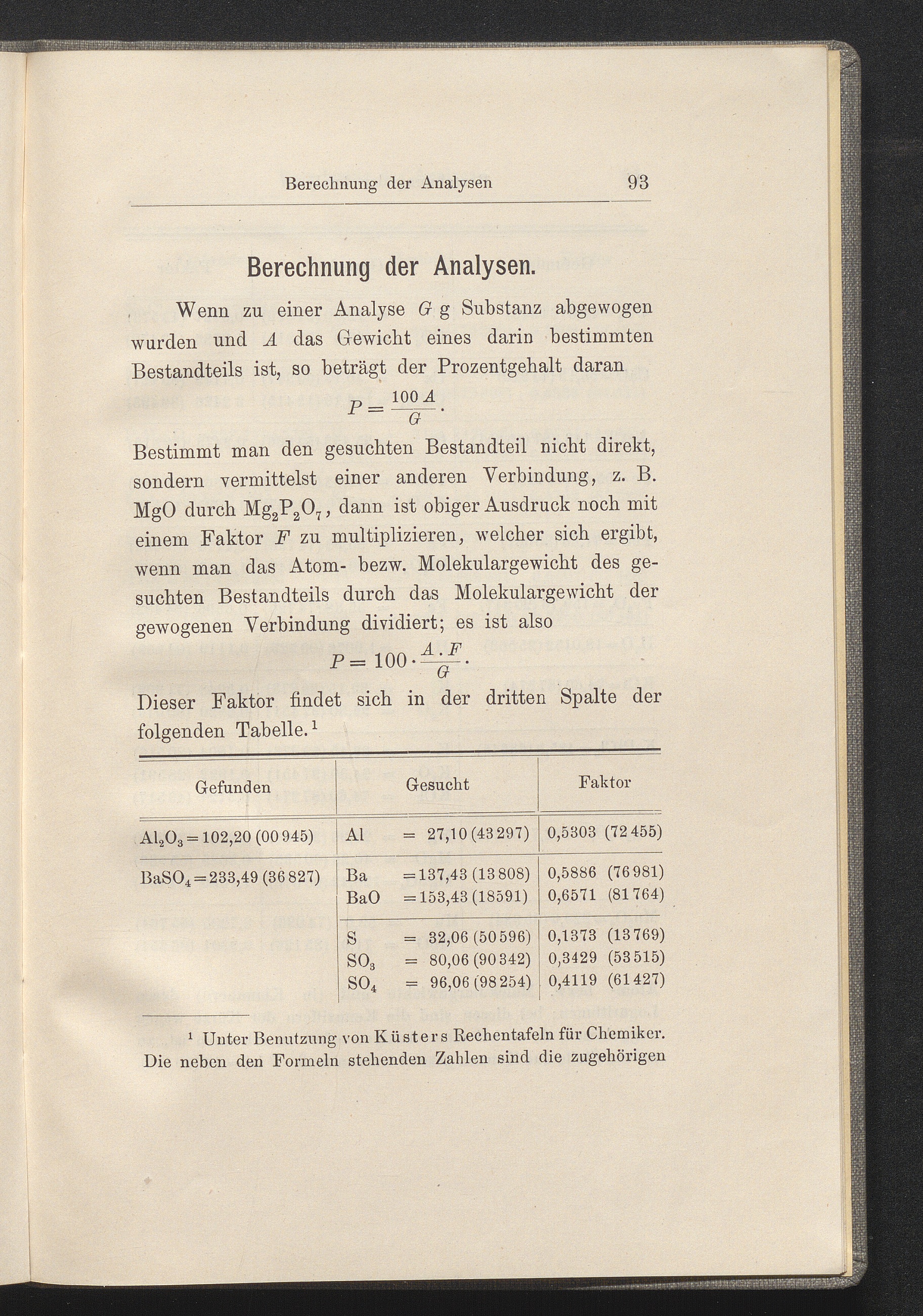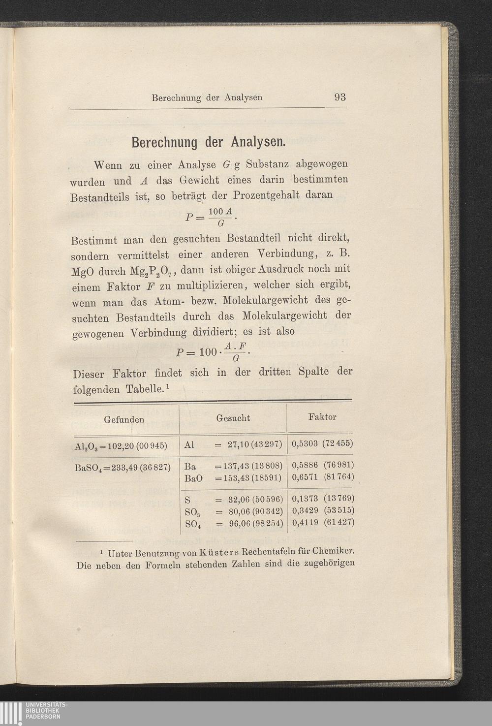 Berechnung der Analysen.
