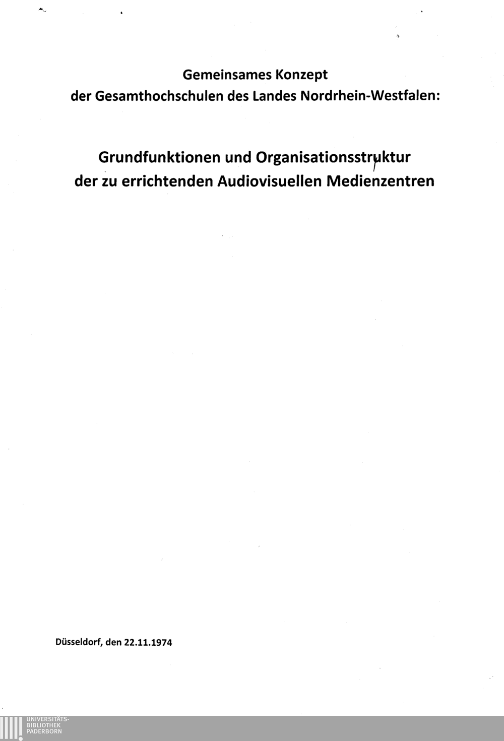 Grundfunktionen und Organisationsstruktur der zu errichtenden Audiovisuellen Medienzentren : gemeinsames Konzept der Gesamthochschulen des Landes Nordrhein-Westfalen