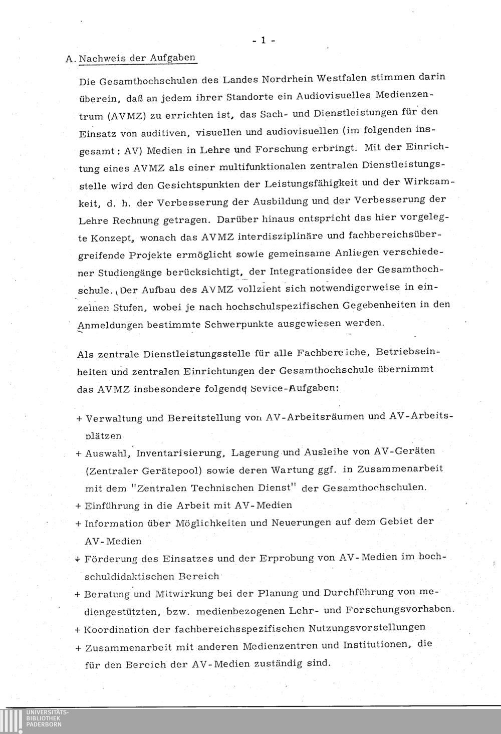 Grundfunktionen und Organisationsstruktur der zu errichtenden Audiovisuellen Medienzentren : gemeinsames Konzept der Gesamthochschulen des Landes Nordrhein-Westfalen