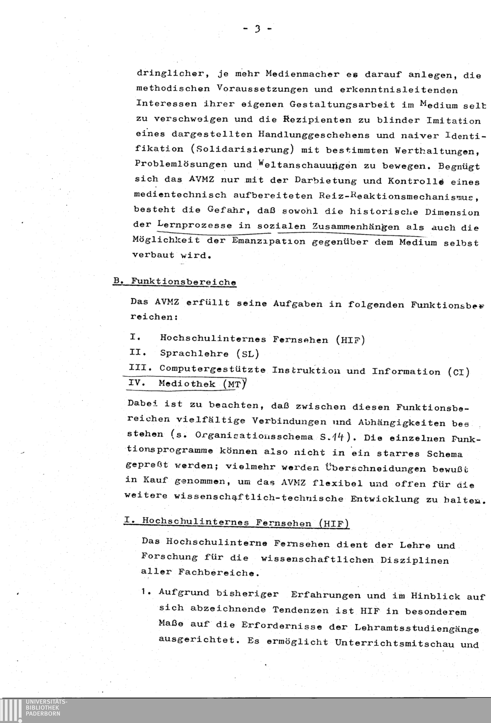 I. Hochschulinternes Fernsehen (HIF)