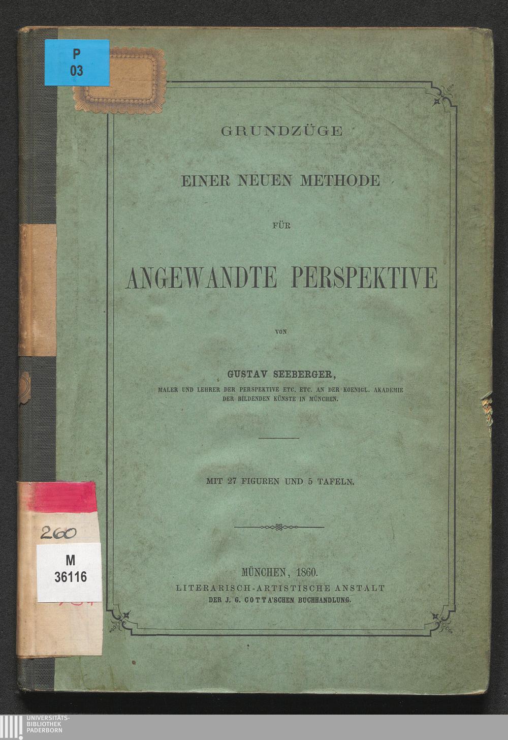 Grundzüge einer neuen Methode für angewandte Perspektive : mit 5 Tafeln / Gustav Seeberger