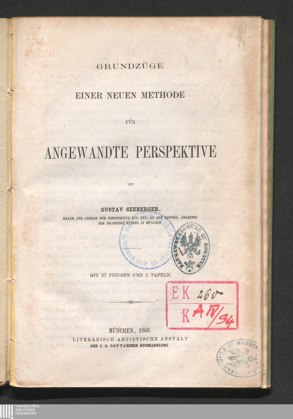 Grundzüge einer neuen Methode für angewandte Perspektive : mit 5 Tafeln / Gustav Seeberger