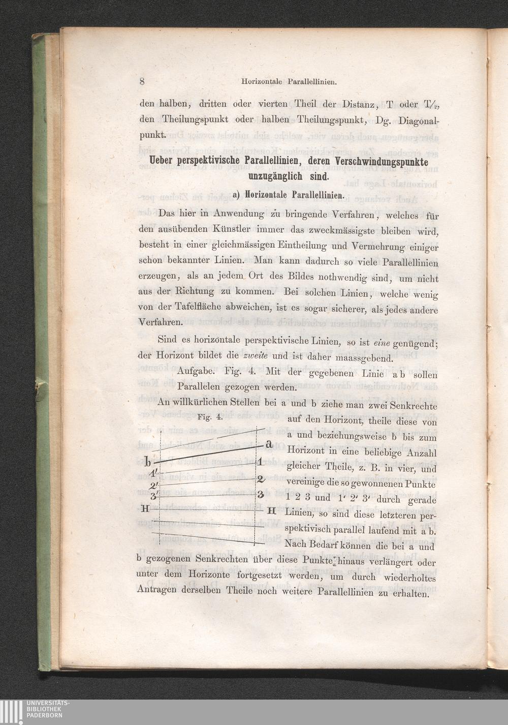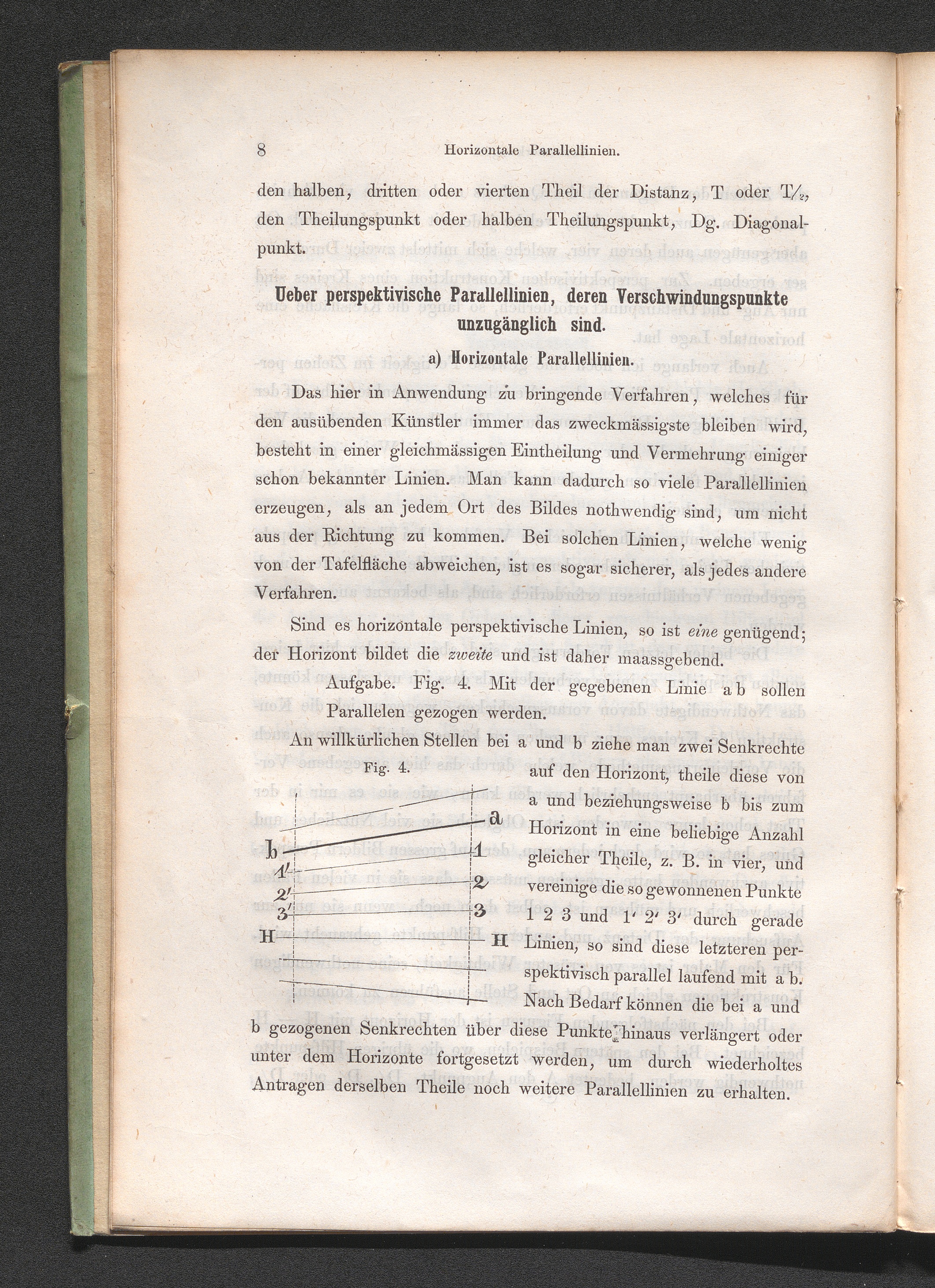 Ueber perspektivische Parallellinien, deren Verschwindungspunkte unzugänglich si[...]