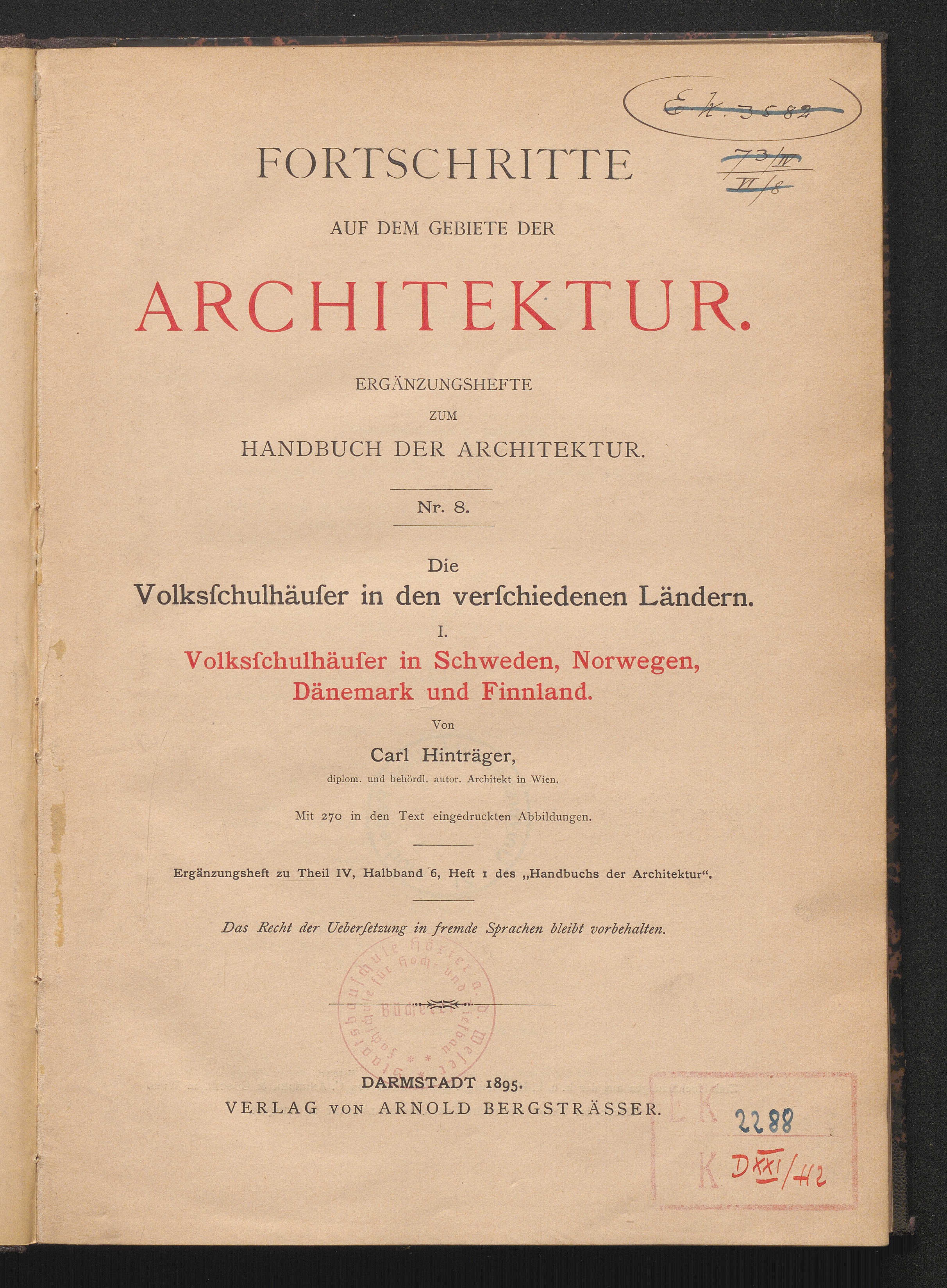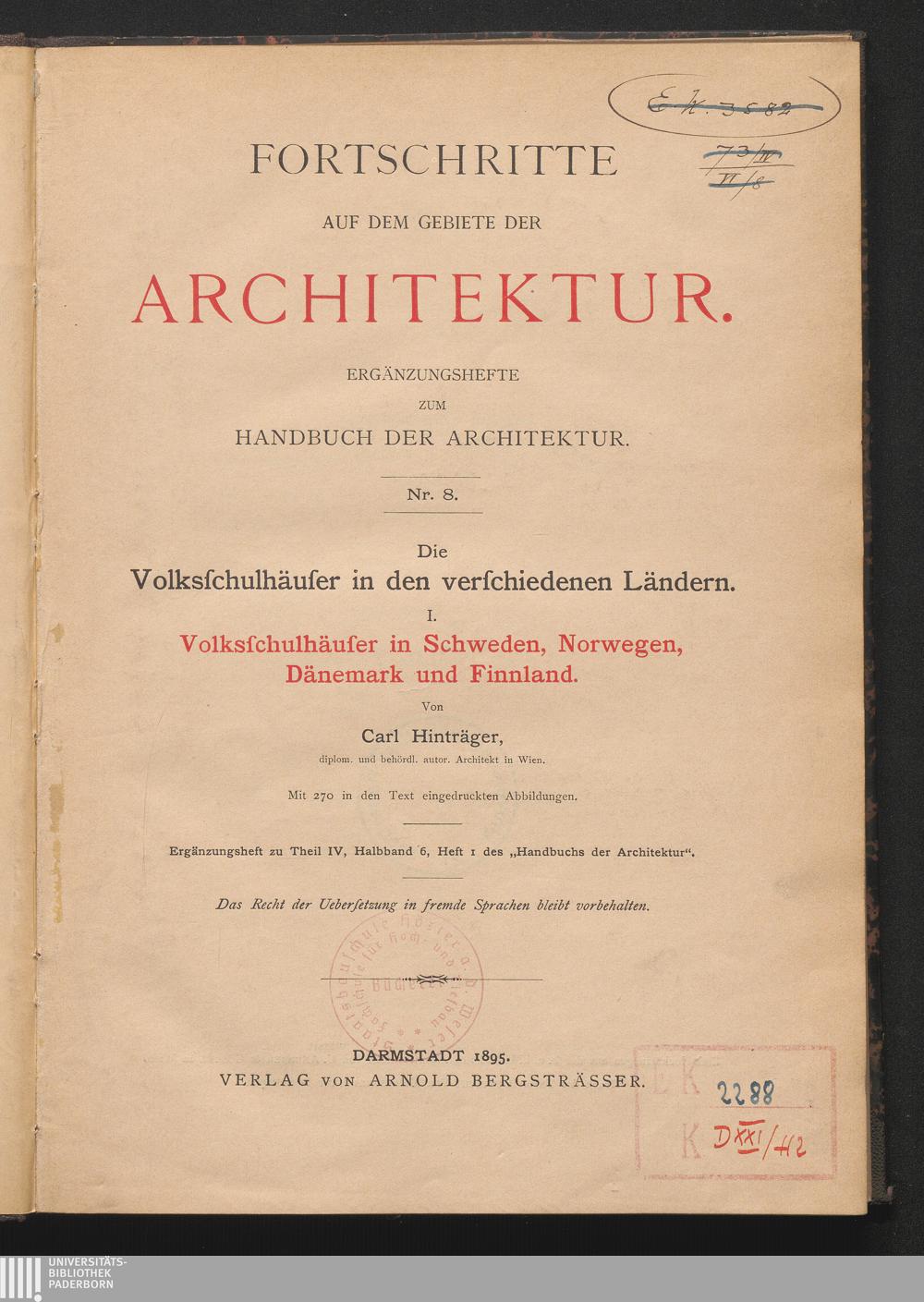 1 (1895) Volksschulhäuser in Schweden, Norwegen, Dänemark und Finnland / von Carl Hinträger