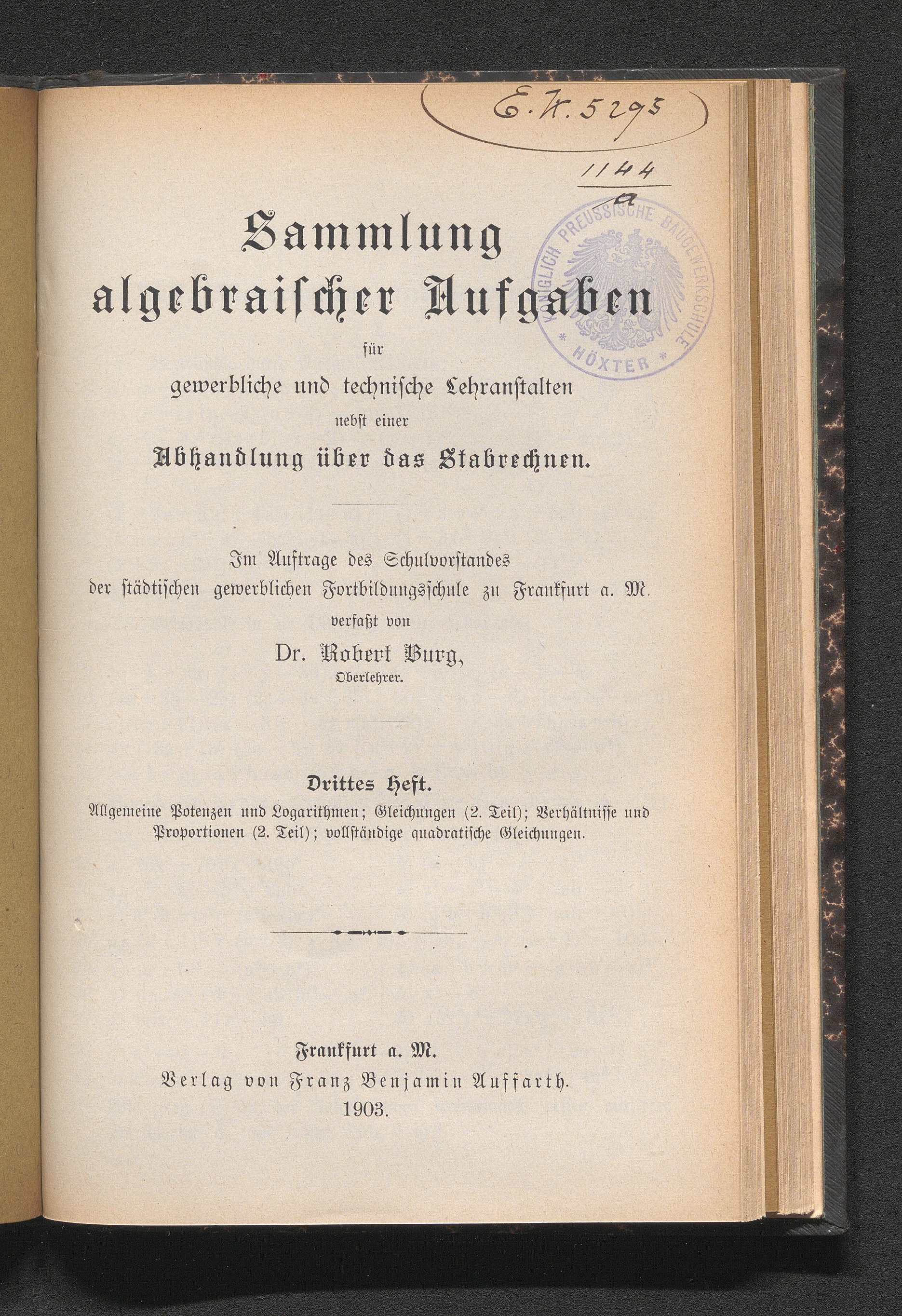 Sammlung algebraischer Aufgaben für gewerbliche und technische Lehranstalten