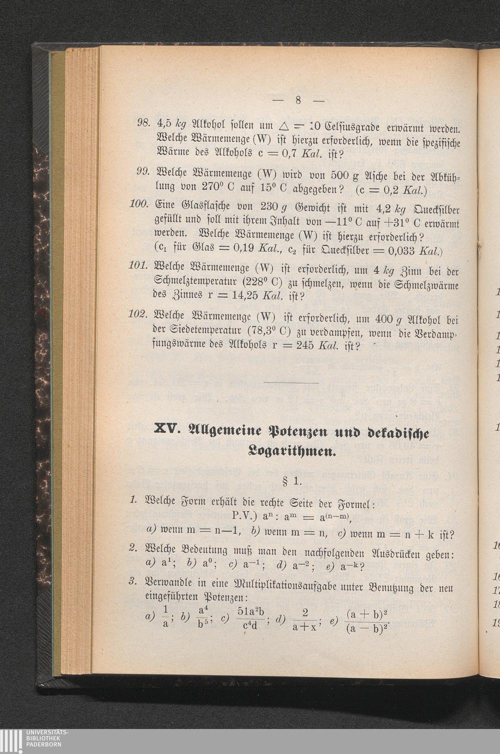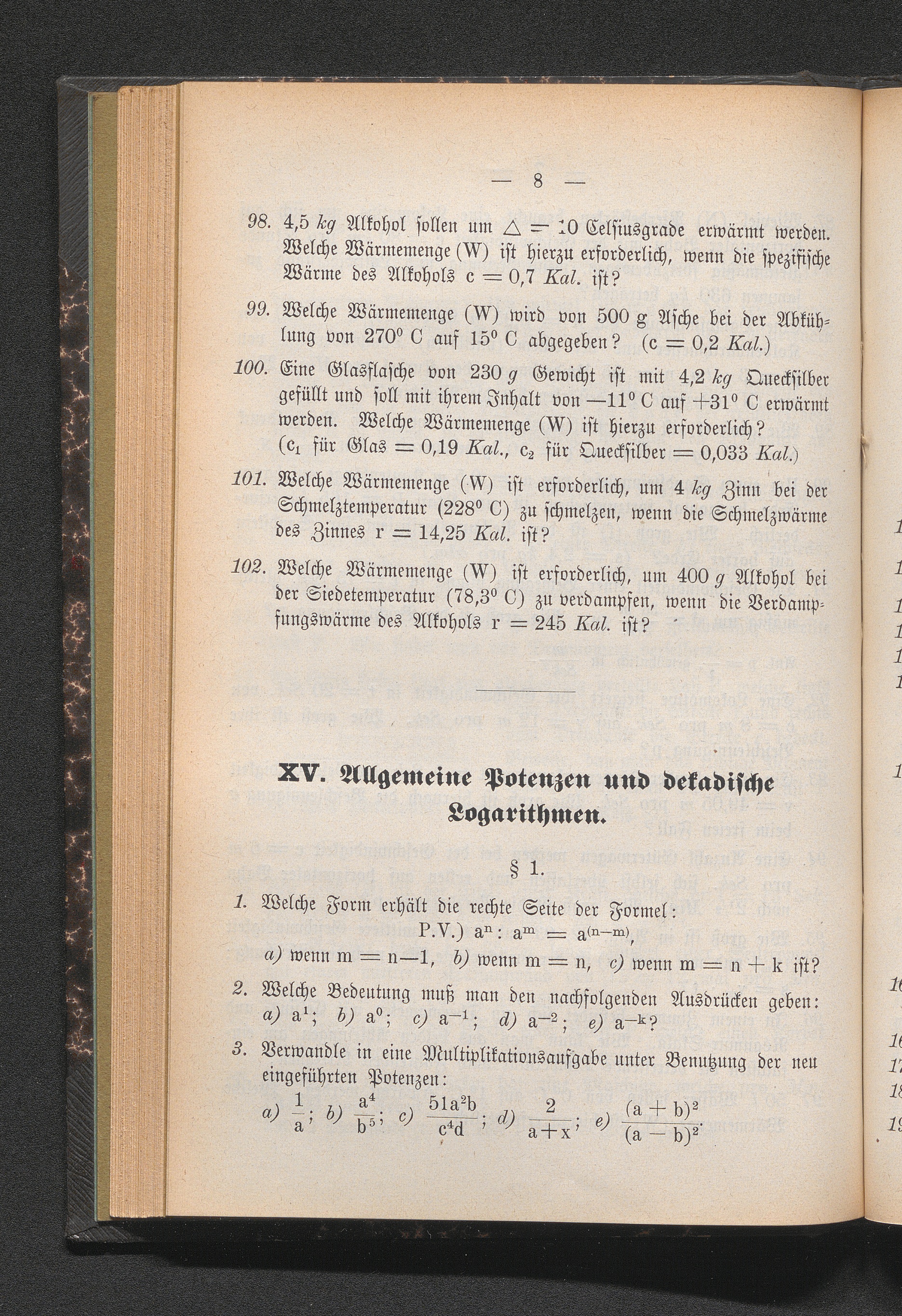 XV. Allgemeine Potenzen und dekadische Logarithmen.
