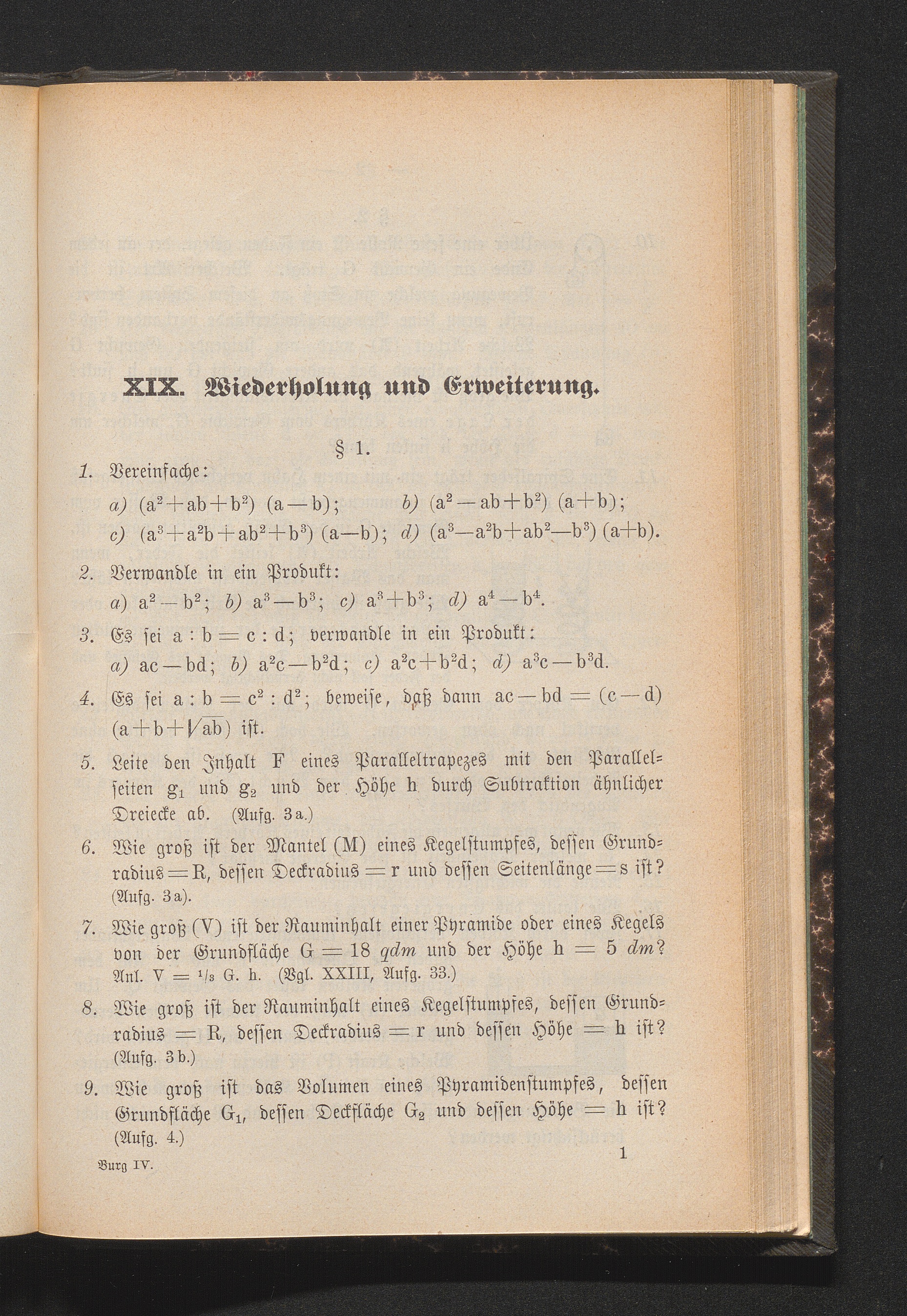 4 (1905) Gleichungen (3. Teil); Proportionalität; Vermische Aufgaben; Summen; Exponentialgleichungen, geometrische Reihen, Zinseszins