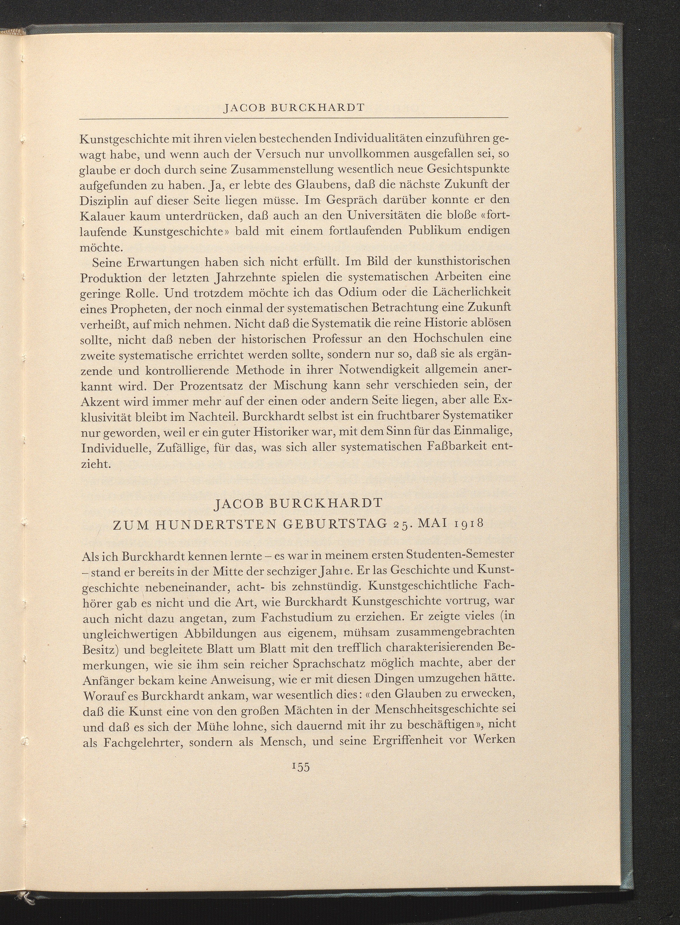 Jacob Burckhardt zum hundertsten Geburtstag 25. Mai 1918