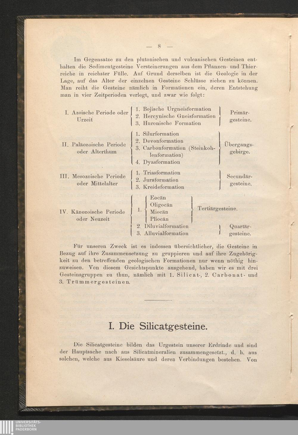 I. Die Silicatgesteine