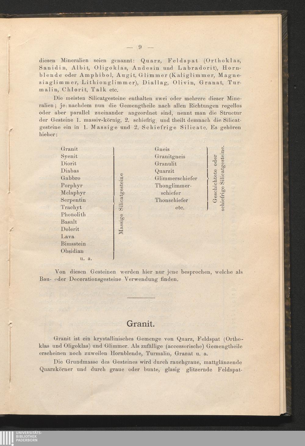 I. Die Silicatgesteine