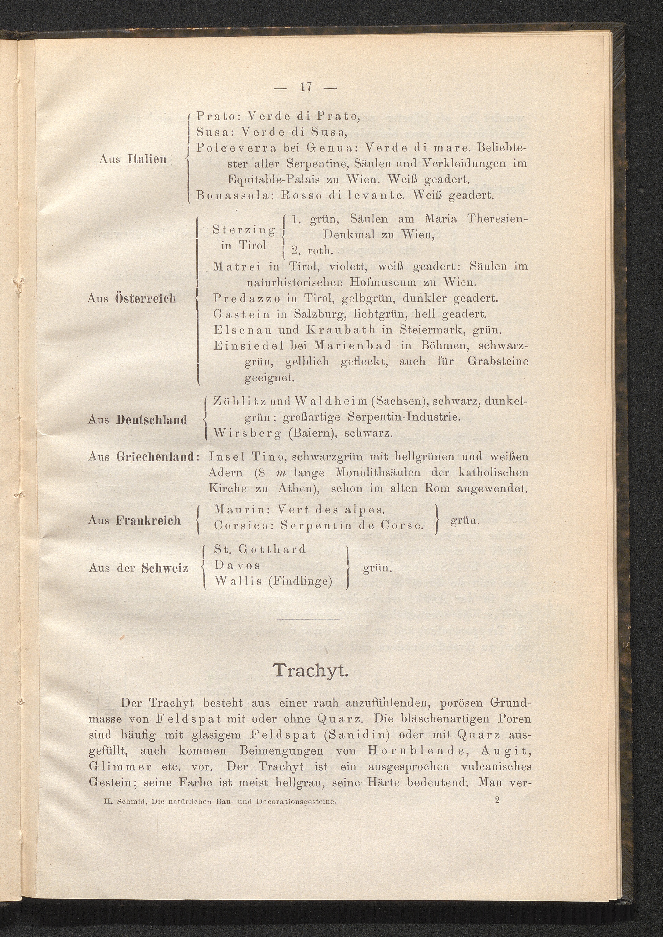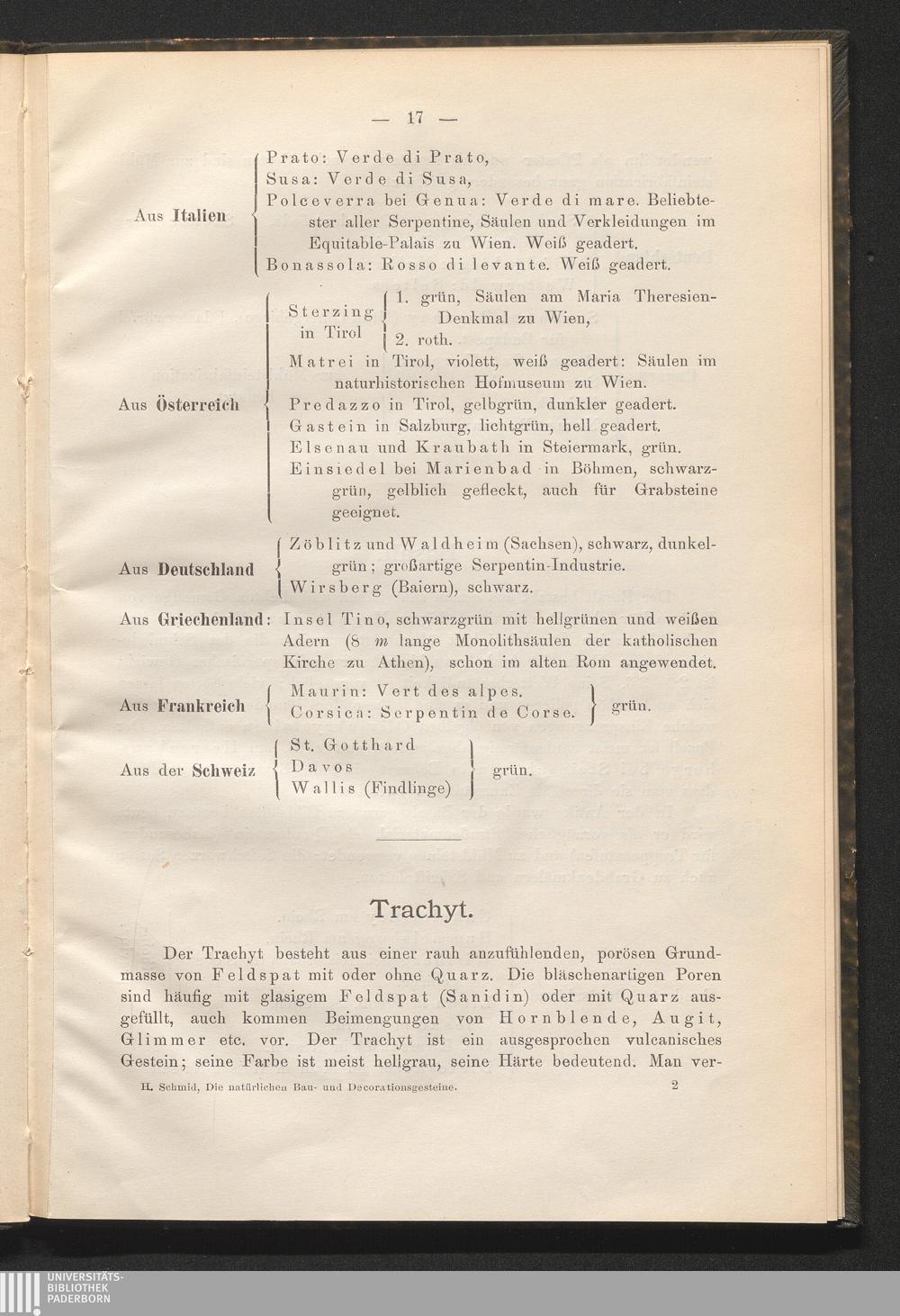 Die natürlichen Bau- und Decorationsgesteine / von Heinrich Schmid