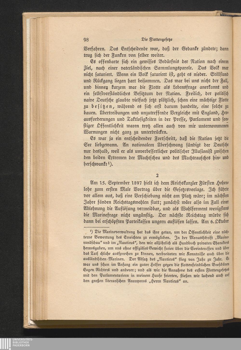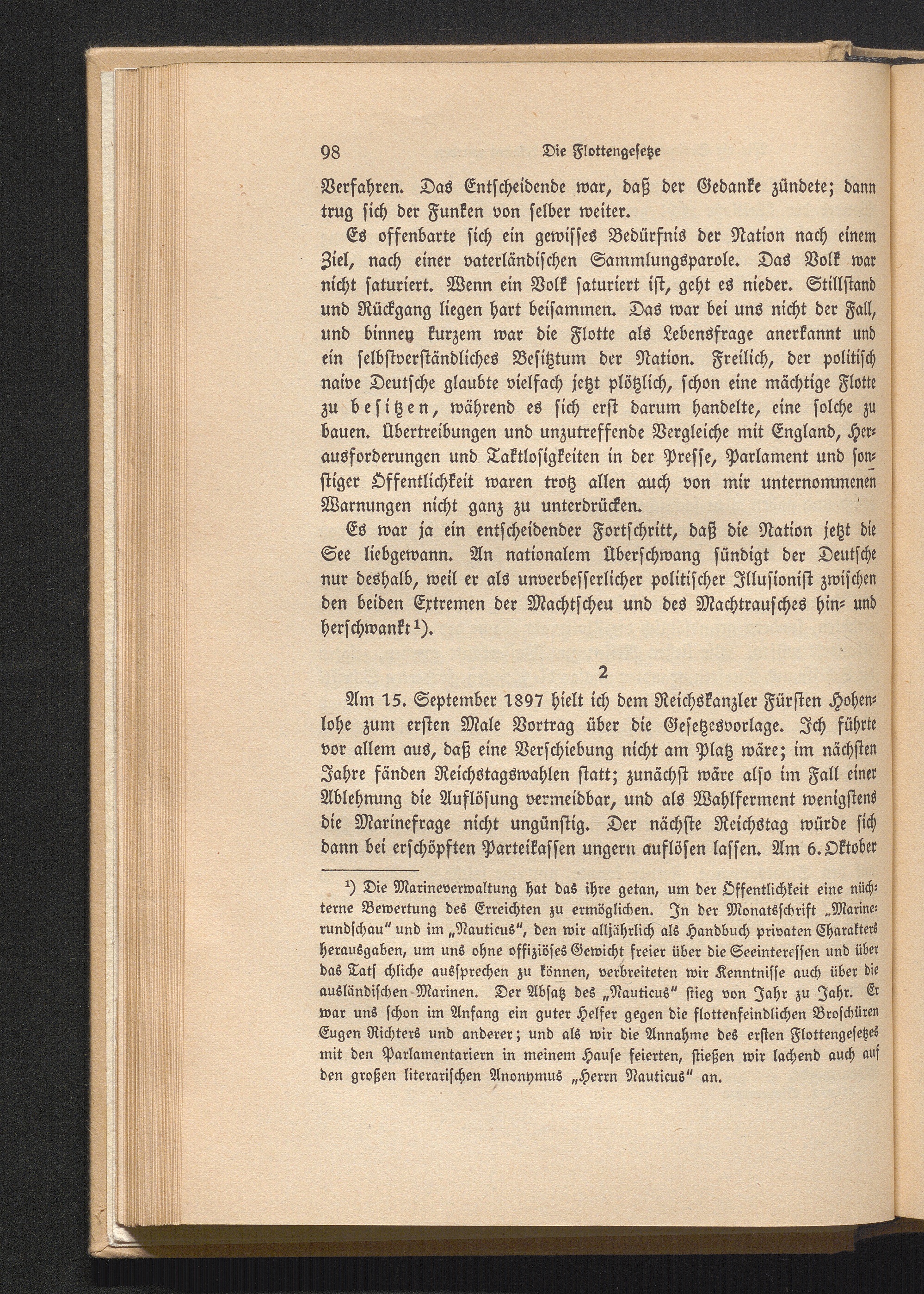 2. Das erste Flottengesetz vor dem Reichstag.