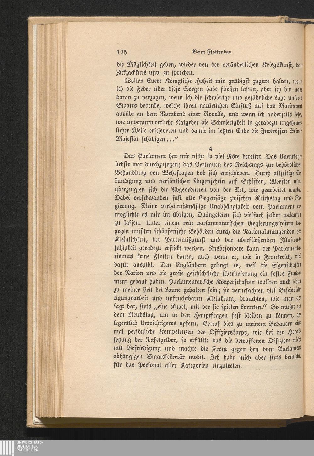 4. Stellung zum Parlament. Vom Personal. Sind wir auf dem richtigen Wege?