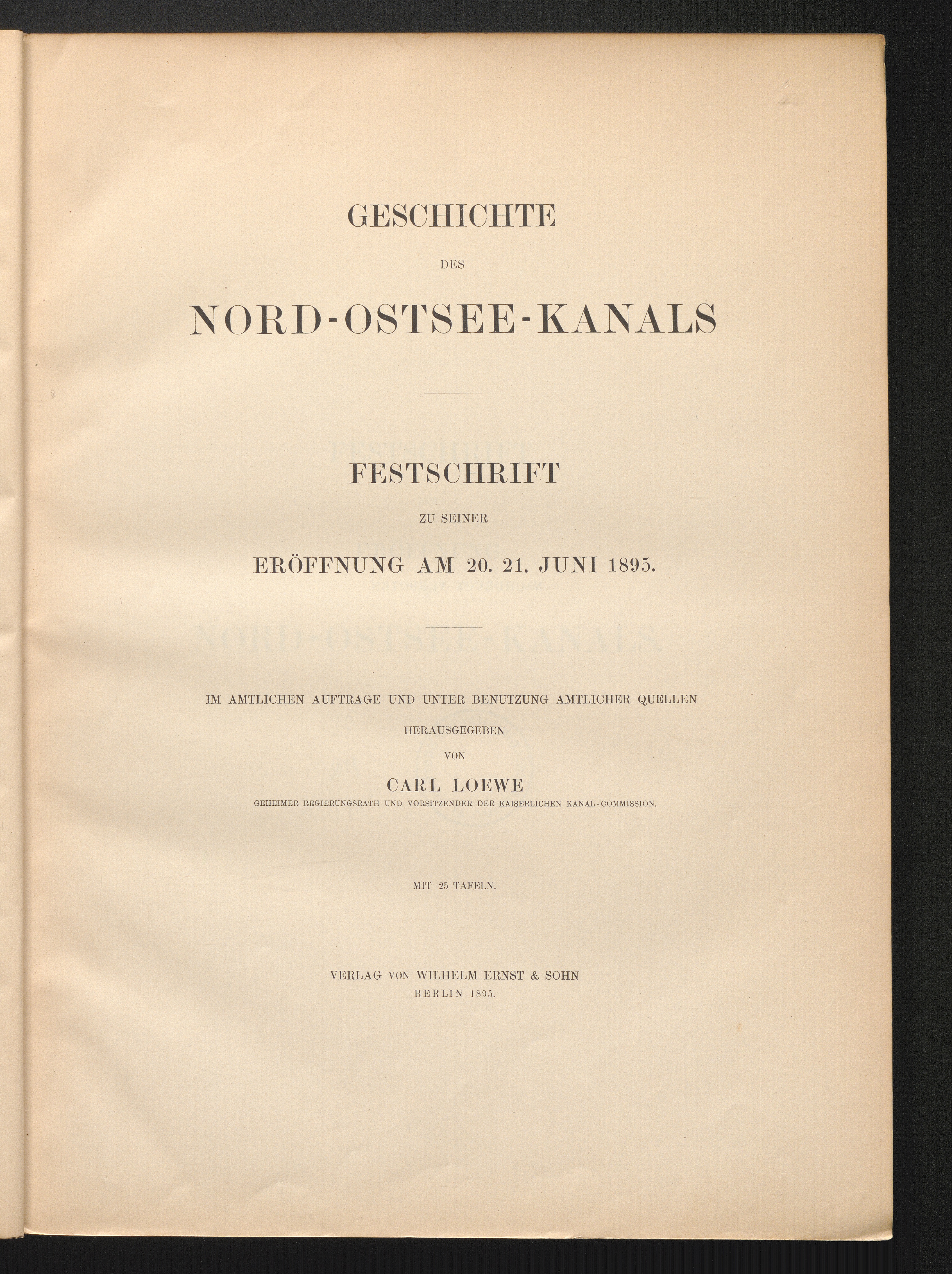 Geschichte des Nord-Ostsee-Kanals : Festschrift zu seiner Eröffnung am 20., 21. Juni 1895 / im amtlichen Auftr. und unter Benutzung amtlicher Quellen hrsg. von Carl Loewe