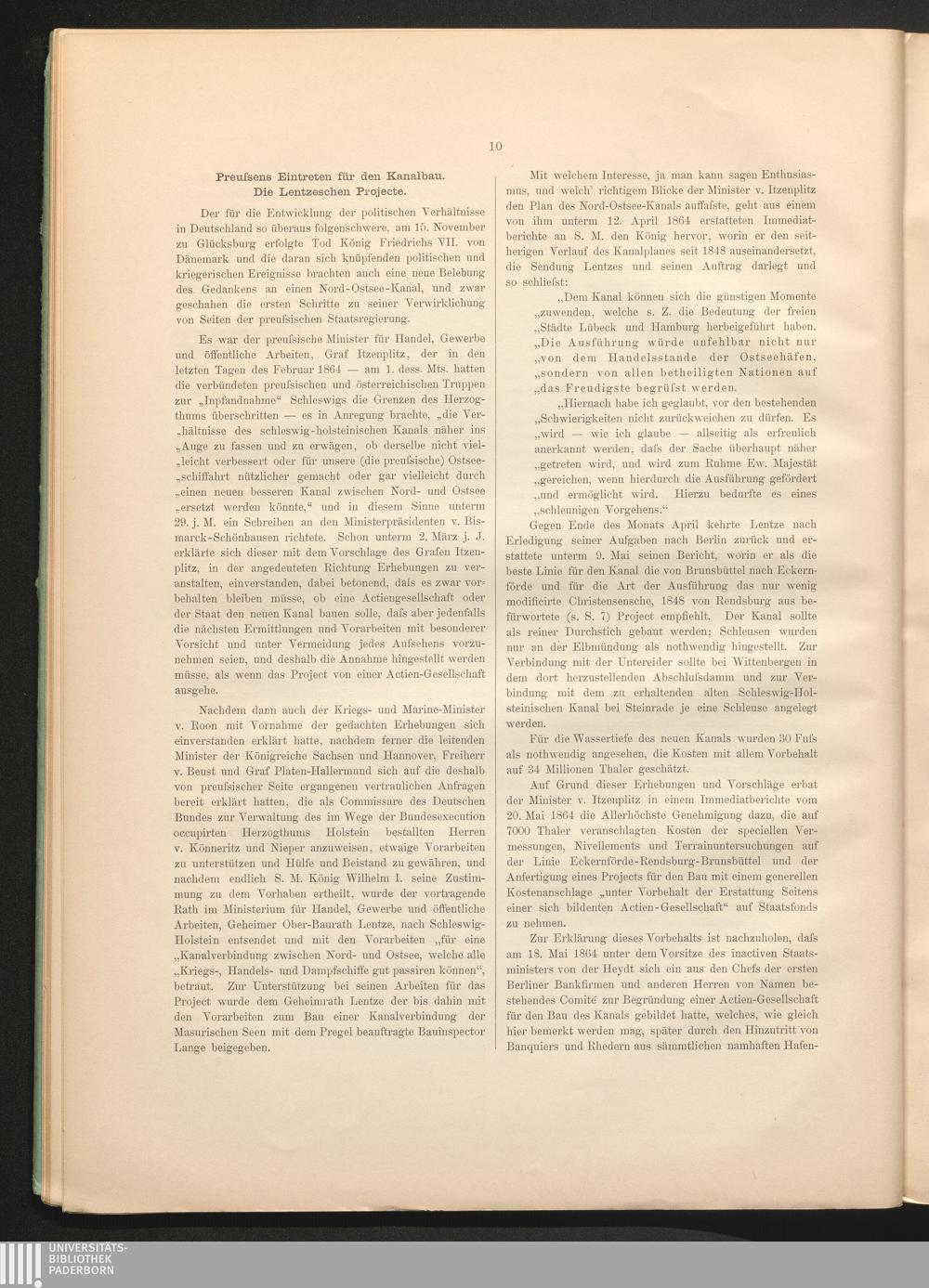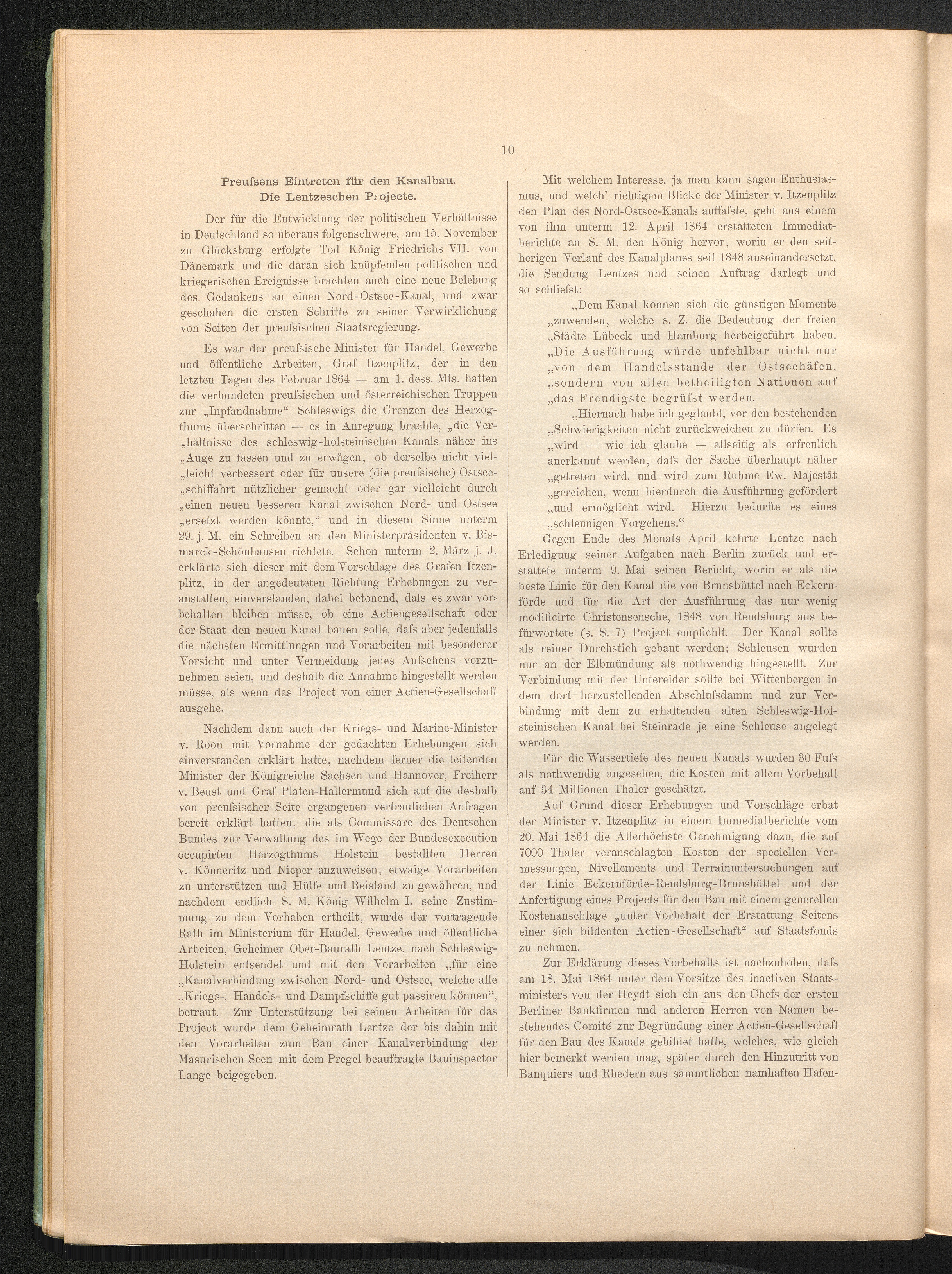 Preussens Eintreten für den Kanalbau. Die Lentzeschen Projecte.