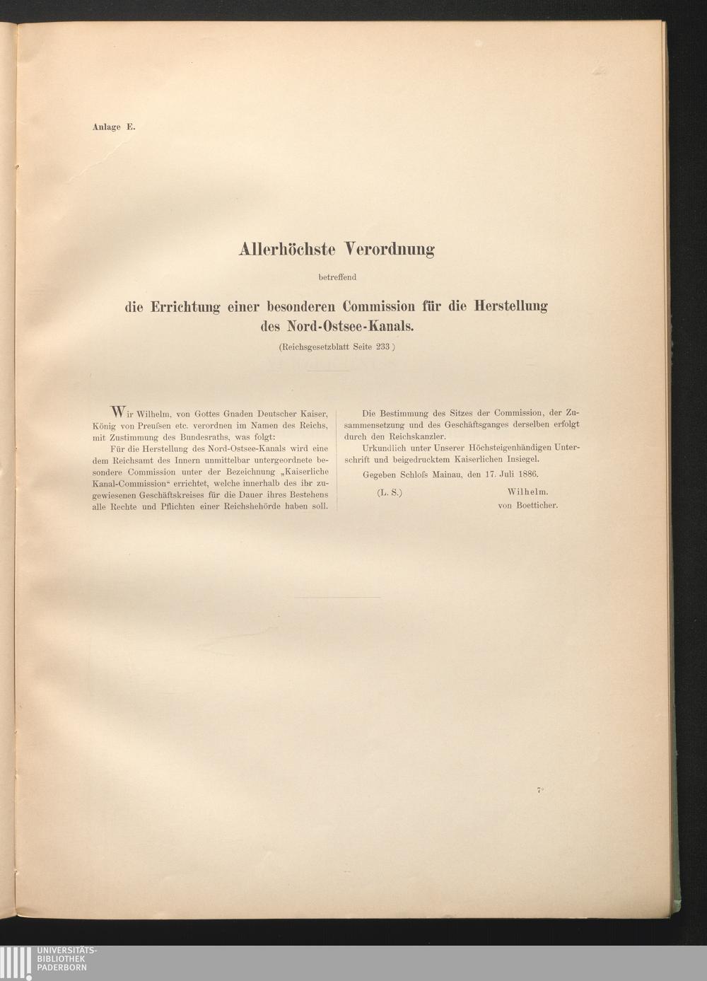 Anlage E. Allerhöchste Verodnung betreffend die Errichtung einer besonderen Commission[...]