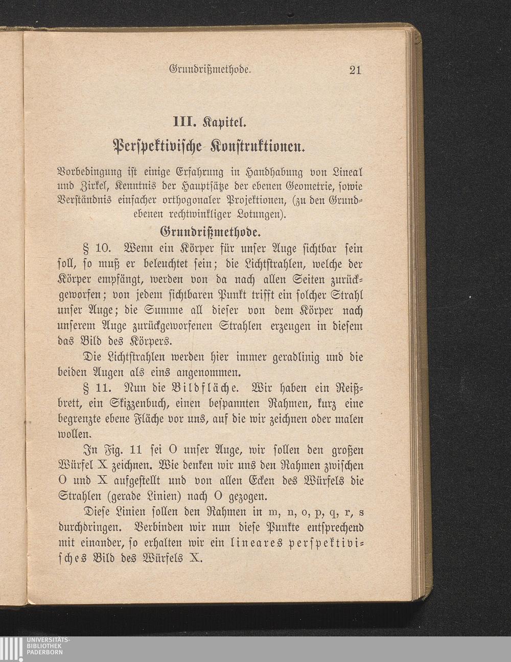 III. Kapitel. Perspektivische Konstruktionen