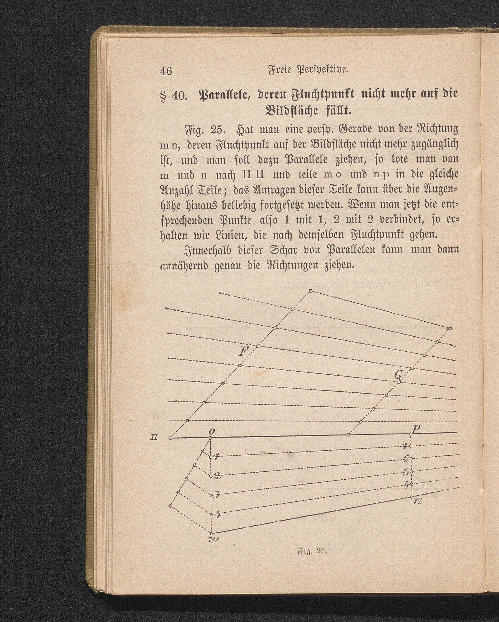 § 40. Parallele, deren Fluchtpunkt nicht auf der Bildfläche liegt