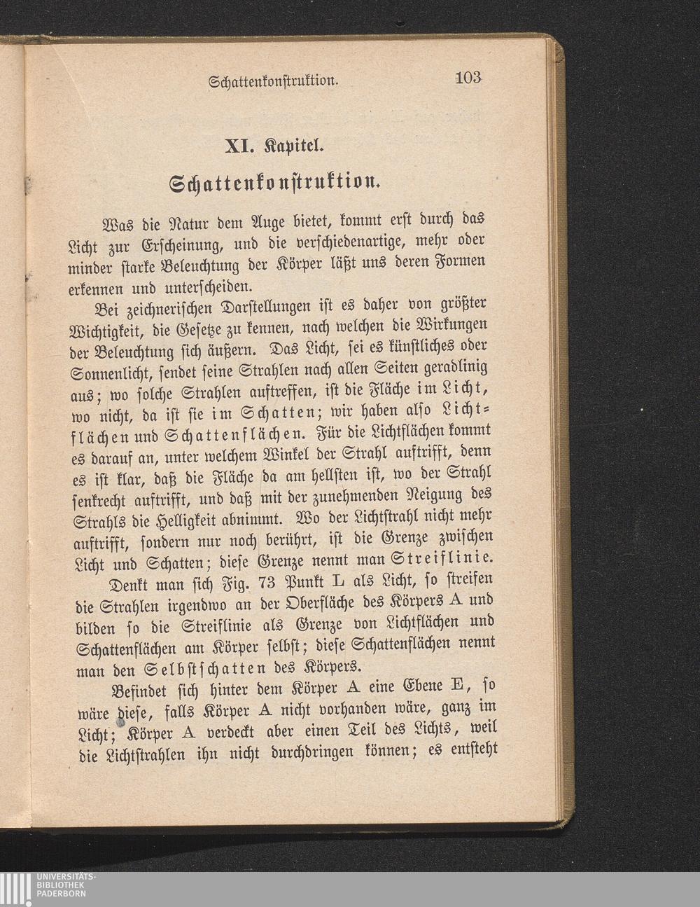 XI. Kapitel. Anhang über geom. Schattenkonstruktion