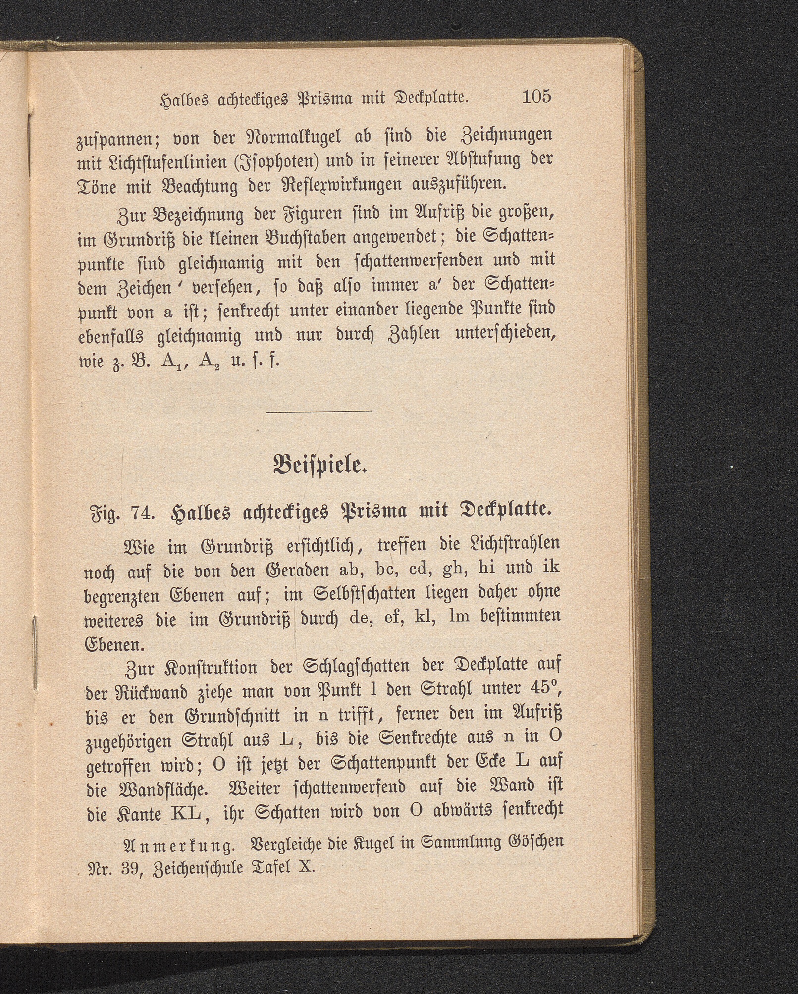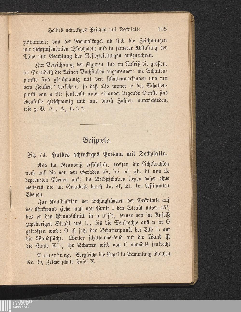 Achteckiges Prisma mit Deckplatte. Fig. 74