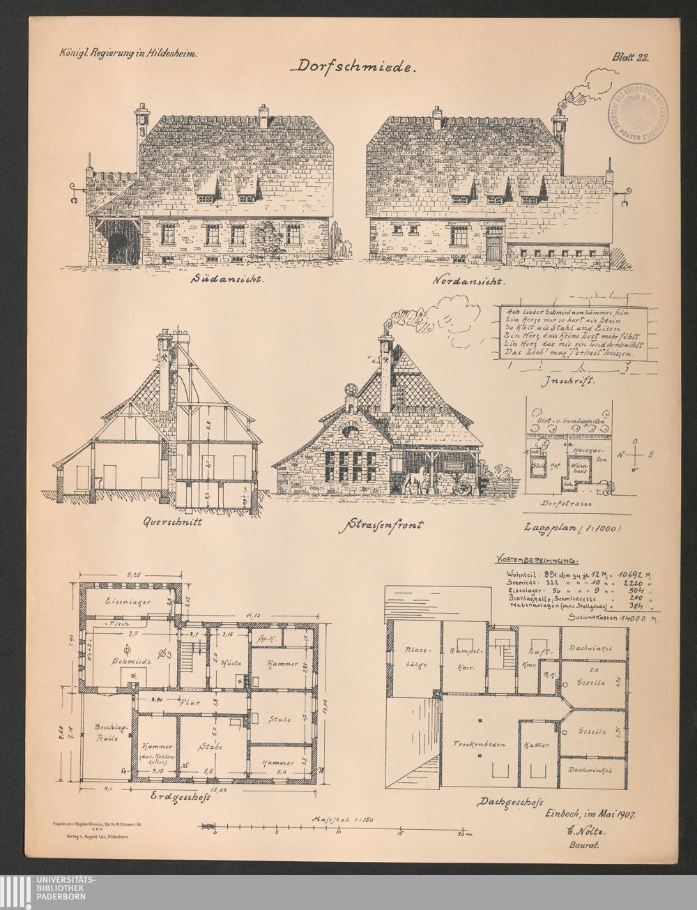 Musterentwürfe für Bauten im Regierungs-Bezirk Hildesheim / hrsg. von d. Königl. Regierung Hildesheim