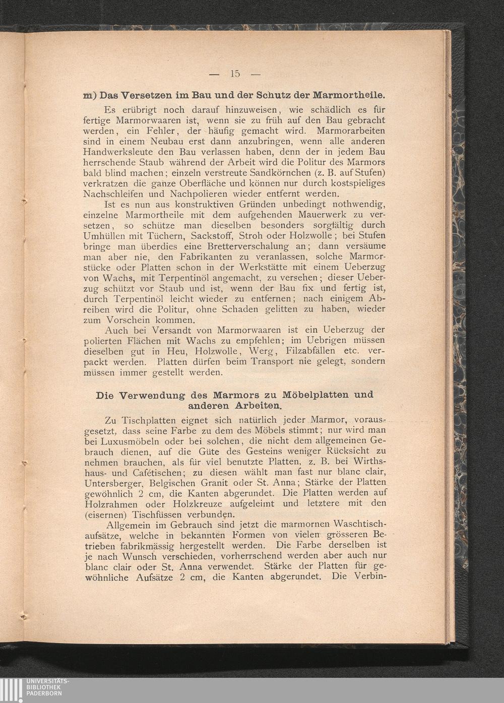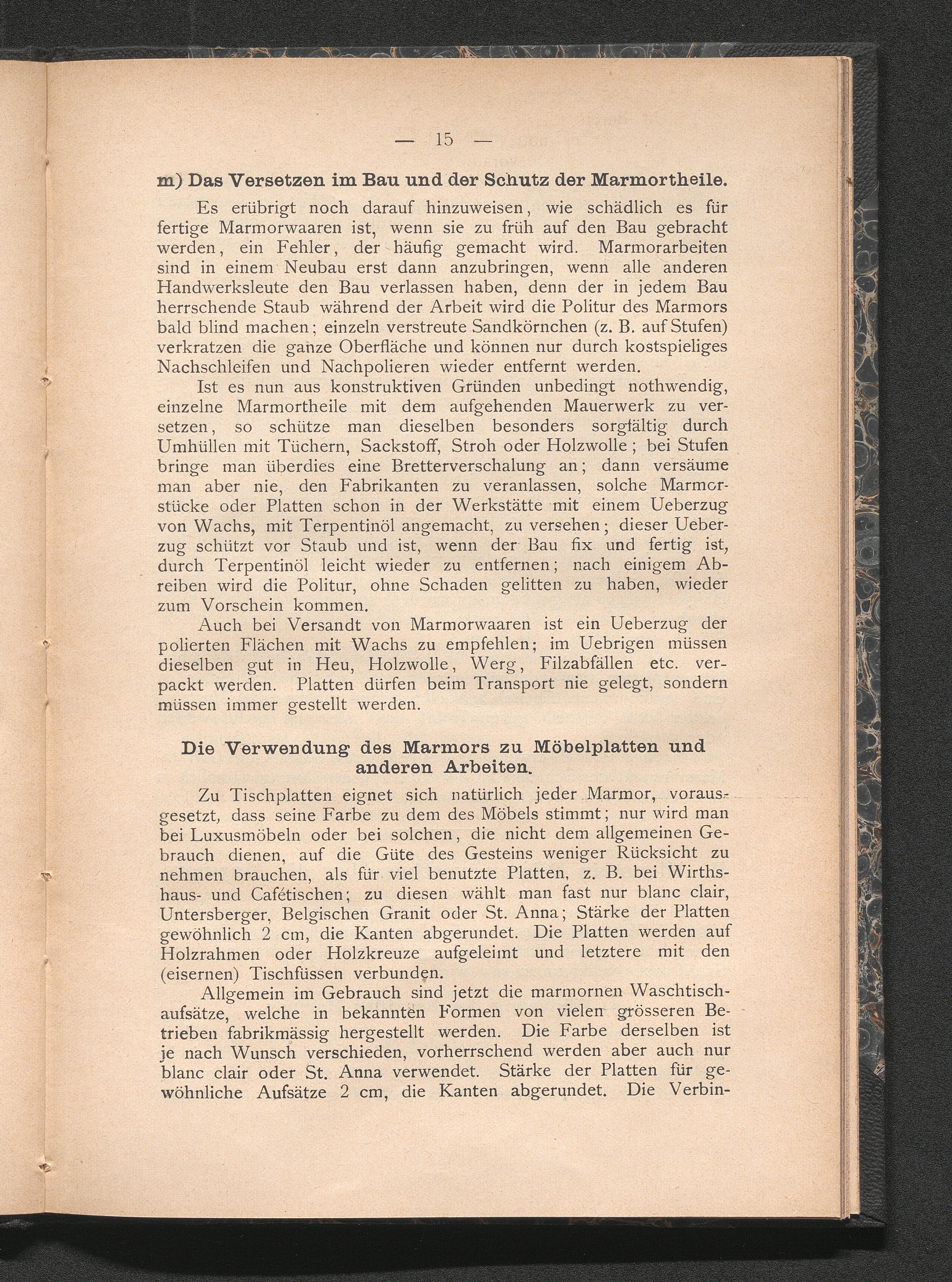 Anhang: Verwendung des Marmors zu Möbelplatten und anderen Arbeiten.
